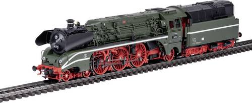Märklin - EAN: 4001883390291 - Der 'Schorsch' - ein einzigartiges Unikat der Deutschen Reichsbahn (DR). Eine ungewöhnliche, ja außerordentliche Lebensgeschichte weist die später Schorsch genannte Dampflok 18 314 der Deutschen Reichsbahn (DR) der DDR auf. Einst 1919 in Dienst gestellt als badischer Edelrenner der Reihe IV h übernahm ihn die DRG als 18 314. Nach Ende des Zweiten Weltkriegs gelangte die Lok im Tausch gegen eine S 3/6 in die Sowjetzone, wo die spätere VES-M Halle dringend eine schnelle Vierzylinder-Verbunddampflok für Versuchsfahrten benötigte. Um noch schneller zu werden, wurde sie 1960 mit Reko-Kessel, Teilverkleidung, neuem Führerhaus und Tender sowie einer grünen Lackierung versehen. Das Tüpfelchen auf dem i bildete 1967 die Umrüstung auf ölhauptfeuerung. Ende 1971 wurde sie abgestellt und 1984 in die BRD verkauft. Seit 1986 bildet sie als Dauerleihgabe der HEF eines der Glanzstücke im Auto- und Technikmuseum in Sinsheim. Der badische Edelrenner der Deutschen Reichsbahn (DR). Vorbild: Schnellzug-Dampflokomotive 18 314 mit öl-Hauptfeuerung und öl-Tender 2 2 T34 der Deutschen Reichsbahn der DDR (DR/DDR). Umbau-Version als Versuchslokomotive der VES-M Halle (Saale). Ausführung mit Reko-Kessel und Teilverkleidung, auf Basis der Dampflokomotive 18 314 (ehemalige Badische IVh). Mit Witte-Windleitblechen und einseitiger Indusi. Betriebszustand um 1968. Highlights Besonders filigrane Metallkonstruktion. Eine Vielzahl angesetzter Details. Serienmäßig mit ... ideeundspi el.com Marklin MäRKLIN 39029 H0 Dampflokomotive Baureihe 18.3, DR, Ep. III