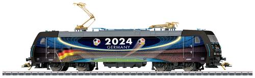 Märklin - EAN: 4001883366494 - Vorbild: Elektrolokomotive Baureihe 185.2 in fiktiver Ausführung anlässlich der 2024 in Deutschland stattfindenden Fußball Europameisterschaft. Modell: Mit Digital-Decoder mfx und umfangreichen Geräuschfunktionen. Spezialmotor, zentral eingebaut. Alle vier Achsen über Kardan angetrieben. Haftreifen. Fahrtrichtungsabhängig wechselndes Dreilicht-Spitzensignal und zwei rote Schlusslichter konventionell in Betrieb, digital schaltbar. Spitzensignal an Lokseite 2 und 1 jeweils separat digital abschaltbar. Wenn Spitzensignal an beiden Lokseiten abgeschaltet ist, dann beidseitige Funktion des Doppel-A-Lichtes. Beleuchtung mit wartungsfreien, warmweißen und roten Leuchtdioden (LED). Griffstangen an den Lokfronten separat angesetzt. Zwei mechanisch funktionsfähige, mit 24-karätigem Gold vergoldete Dachstromabnehmer. Länge über Puffer 21,7 cm. - bei voelkner.de - aus Yadore Produktdaten ![]() ![]()