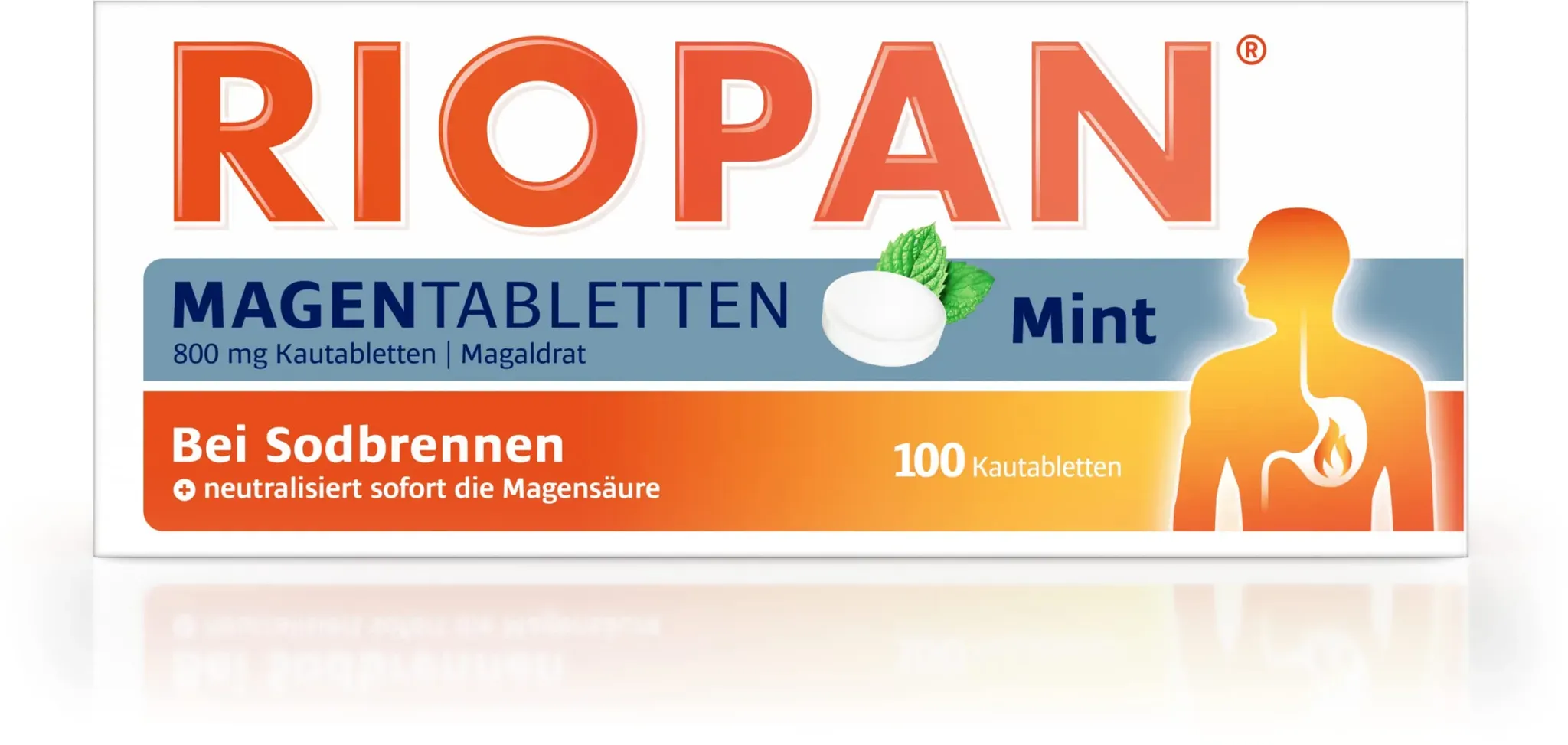 0.27 eur / 1st - 'Arzneimittel-Gesundheit Verdauung Sodbrennen' Vitamine & Ergänzungen - EAN:4150007493186 - Zum Kauen bei SodbrennenDr. Kade's RIOPAN Magen Tabletten zur Anwendung bei Sodbrennen und säurebedingten Magenbeschwerden - für ein frischeres Atemgefühl.Die angenehm anzuwendenden Kautabletten löschen schnell das Brennen in der Speiseröhre und beruhigen den Magen.1 Kautabelette enthält 800 mg wasserfreies Magaldrat. - gefunden von Kelkoo ![]() ![]() RIOPAN Magen Tabletten Mint 800 mg Kautabletten: Effektiv und schnell gegen Sodbrennen und Aufstoßen mit Wirkstoff Magaldrat, 100 Tabletten