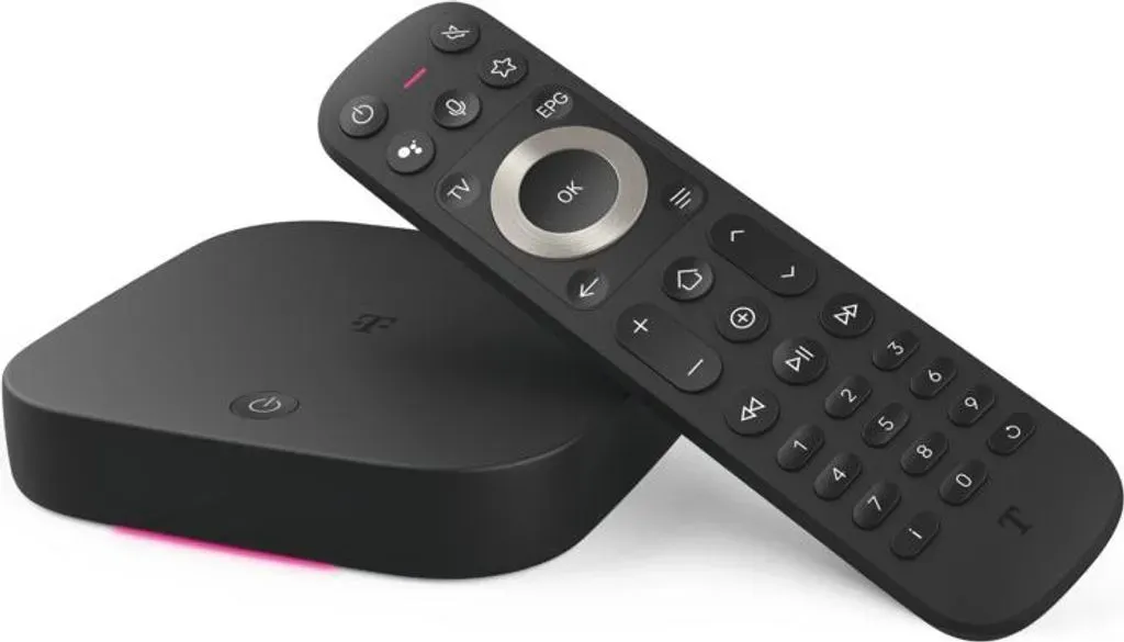 T-Com - EAN: 4025125545683 - Telekom Magenta TV One Premium Box, 2. Generation schwarzMit der Magenta TV-One Premium Box 2. Generation erhalten Sie Magenta TV, Streaming Dienste, Mediatheken und Apps. Außerdem ist eine Fernbedienung mit leuchtenden Tasten enthalten. Schalten Sie mit der TV-Taste ins laufende TV-Programm... - bei ejoker.de - aus Yadore Produktdaten ![]() ![]() Telekom MagentaTV One 2. Generation schwarz