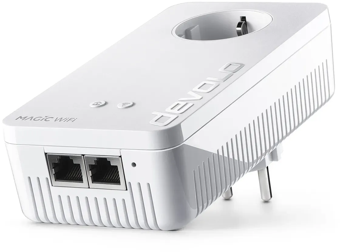 devolo - EAN: 4250059671843 - Devolo Powerline-Adapter - jetzt mit WLAN-Boost Der Magic 2 WiFi 6 next revolutioniert die WLAN-Geschwindigkeit in Ihrem Zuhause! Mit bis zu 3.000 Mbit/s* versorgt der Adapter zuverlässig alle Nutzer zeitgleich mit stabilem WLAN. Denn dank OFDMA werden die Kanäle flexibel genutzt: Bestes WLAN für alle - beim Senden, Empfangen und auch bei vielen parallelen Nutzern! Durch moderne Technik wie Easy Mesh und Wi-Fi 6 bringt der devolo Magic 2 WiFi 6 next das Internetsignal mühelos durch Decken und Wände. So wird jede Steckdose mit einem WLAN-Adapter zum kraftvollen WLAN-Hotspot. Ideal für datenhungrige Anwendungen wie Homeoffice mit Videokonferenzen, Streaming, Gaming und S. Das Heimnetz über die Stromleitung erweitern Mit Hilfe moderner Powerline-Technologie wird jede Steckdose zur leistungsfähigen Internetquelle - sowohl kabelgebunden als auch kabellos. Die Datenübertragung erfolgt stabil über die bestehende Stromleitung, so dass keine zusätzliche Verkabelung notwendig ist. Pfeilschnelle Datenübertragung Mit einer übertragungsrate von bis zu 3.000 Mbit/s bleibt die Verbindung auch bei starker Auslastung konstant leistungsfähig. Auch anspruchsvolle Anwendungen wie 4K-Streaming, Cloud-Gaming oder Online-Meetings laufen flüssig und unterbrechungsfrei. Fortschrittliche Verschlüsselung für mehr Sicherheit Das Netzwerk bleibt durch den aktuellen WPA3-Standard geschützt. Diese Verschlüsselungstechnologie bietet eine besonders robuste ... Ein weiterer kostengünstiger Einzeladapter, der eine gute Balance zwischen Powerline- und WiFi-Geschwindigkeit bietet. ![]() ![]() devolo Magic 2 WiFi 6 next Powerline Adapter Powerline bis zu 2.400 Mbit/s, WiFi 6 bis zu 3.000 Mbit/s, 2x Gigabit LAN