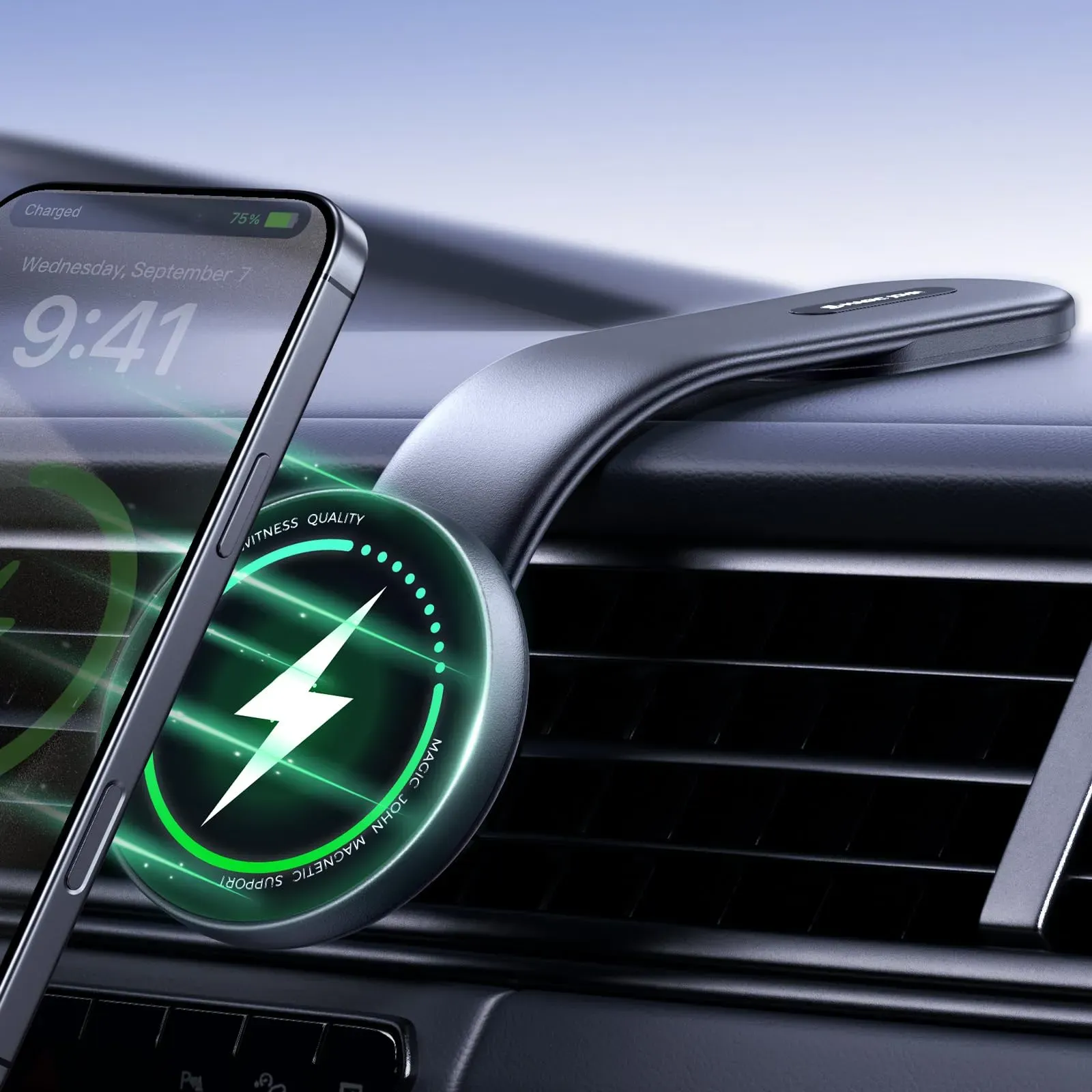 Kategorie: KFZ Einbau - magic john - Universelle Kompatibilität: Diese Mag Safehalterung Auto funktioniert nicht nur mit magnetischen Handys sie hält die meisten Smartphones sicher. Befestigen Sie einfach den mitgelieferten Metallring an nicht-magnetischen Handyhüllen für sofortigen Magnetgriff. Kompatibel mit kabellos ladbaren Telefonen. Militärisch starker Magnet-Halt: Ausgestattet mit starken Magneten für bombenfesten Halt. Diese Autohalterung Handy MagSafe hält Ihr Handy selbst auf holprigen Straßen oder in scharfen Kurven sicher, lässt sich aber dennoch einhändig befestigen und lösen. 15W Schnellladung kabellos: Unser Magsafe Ladegerät Auto liefert ultraschnelle 15W-Ladung. Setzen Sie Ihr Handy einfach auf und laden Sie während der Fahrt sofort. Intelligente Temperaturkontrolle verhindert überhitzung und gewährleistet Effizienz. 180 verstellbar & stabiler Blickwinkel: Der iPhone Halterung Auto MagSafe Arm aus Flugzeugaluminium lässt sich um 180 biegen und in jedem Winkel fest arretieren. Ideal für Hochformat (GPS/Anrufe) oder Querformat (Videos), ohne Sichtbehinderung. Mühelose Installation: Keine sperrigen Klemmen oder umständliche Lüftungsgitter-Befestigung kleben Sie einfach das Klettband auf Ihr Armaturenbrett und setzen Sie Ihr Handy auf die Halterung. In 10 Sekunden einsatzbereit! Verstopft keine Lüftungsschlitze und ermöglicht flexible Positionierung anders als herkömmliche induktive Ladestation Auto Lösungen. Hinweis: Für ein besseres Erlebnis warten Sie bitte ... Dieser Bluetooth Lautsprecher mit Magsafe Handy Ständer ist eine vielseitige Lösung für Musikgenuss und stabile Handyplatzierung. ![]() ![]() MAGIC JOHN Bluetooth Lautsprecher mit Magsafe Handy Ständer Tisch, Musikbox mit Licht, Bluetooth 5.3, 3.5h+ Akku, Kraftvoller Stereo-Klang für iPhone, Galaxy usw.(Schwarz)
