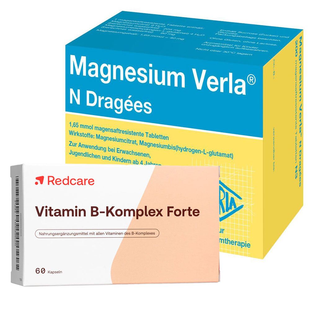 Der angezeigte Preis könnte seit dem letzten Update gestiegen sein - EAN: 4150081119477 - RedCare Vitamin B-Komplex Forte + Redcare Magnesium + Calcium + D3Im Set enthalten: RedCare Vitamin B-Komplex Forte Redcare Magnesium + Calcium + D3Nahrungsergänzungsmittel sind kein Ersatz für eine ausgewogene und abwechslungsreiche Ernährung und... - Zustand: NEW - bei SHOP APOTHEKE - gefunden von Buycentral Dieses Set kombiniert Magnesium mit einem Vitamin B-Komplex, was synergistische Vorteile bieten kann. ![]() Magnesium Verla® N Dragées + Redcare Vitamin B-Komplex Forte 200+60 St Set