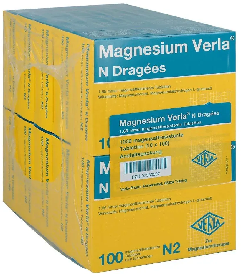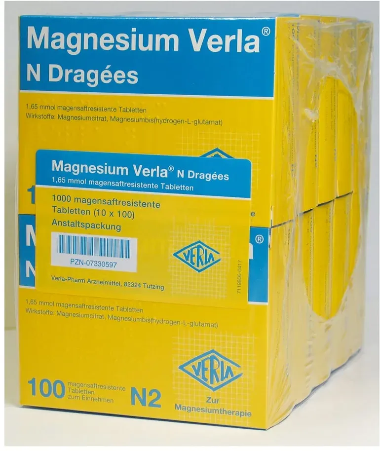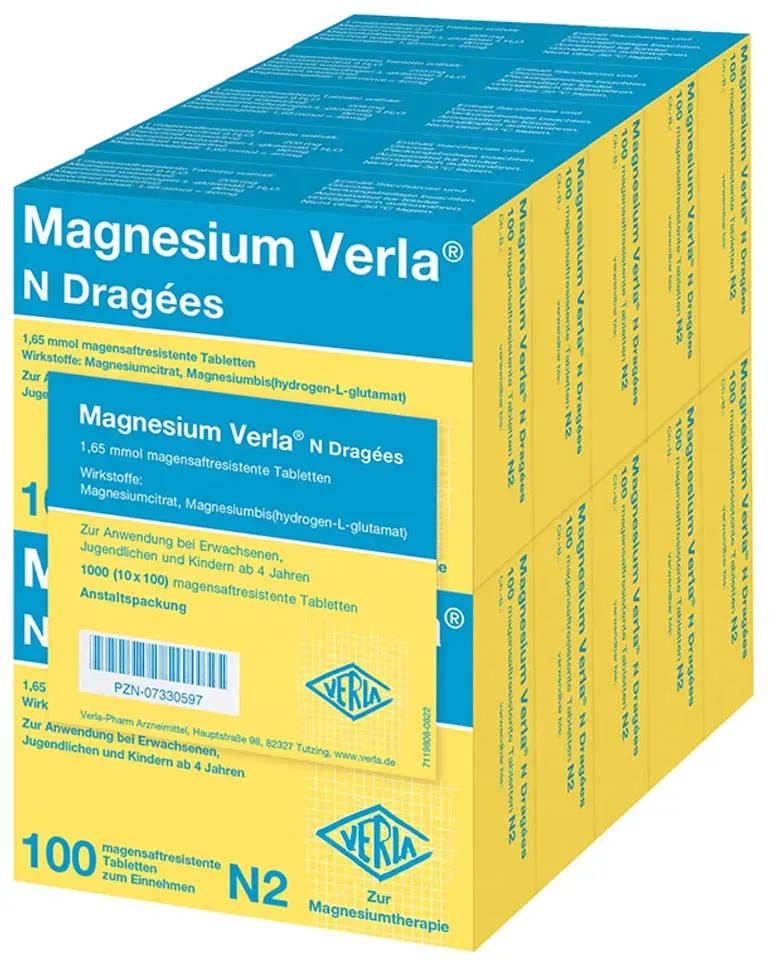 0,05 /St - Kategorie: Arzneimittel - VERLA - GTIN:4150073305970 - PZN:07330597 - Magnesium Verla N Dragees 10X100 St - rezeptfrei - von Verla-Pharm Arzneimittel GmbH & Co. KG - Tabletten magensaftresistent - 1000 St - 51,60 Euro bei DocMorris Apotheke - gefunden von billiger.de Dieses Angebot für 10x100 Stück zu 57.48 Euro bietet eine große Menge zu einem fairen Preis. ![]() ![]() Magnesium Verla N Dragees 10X100 St