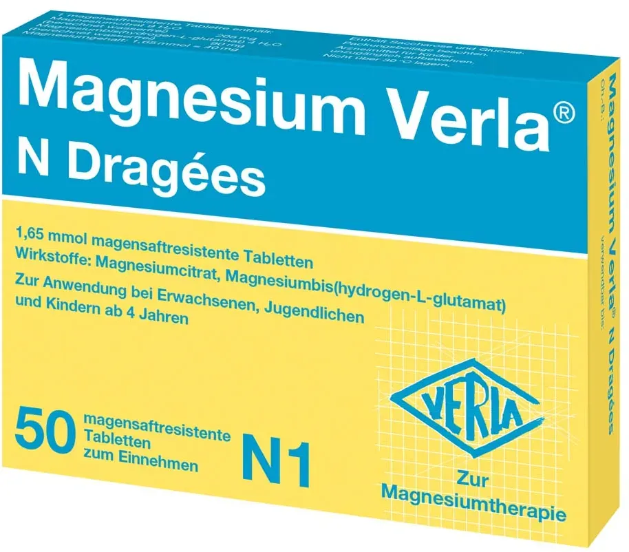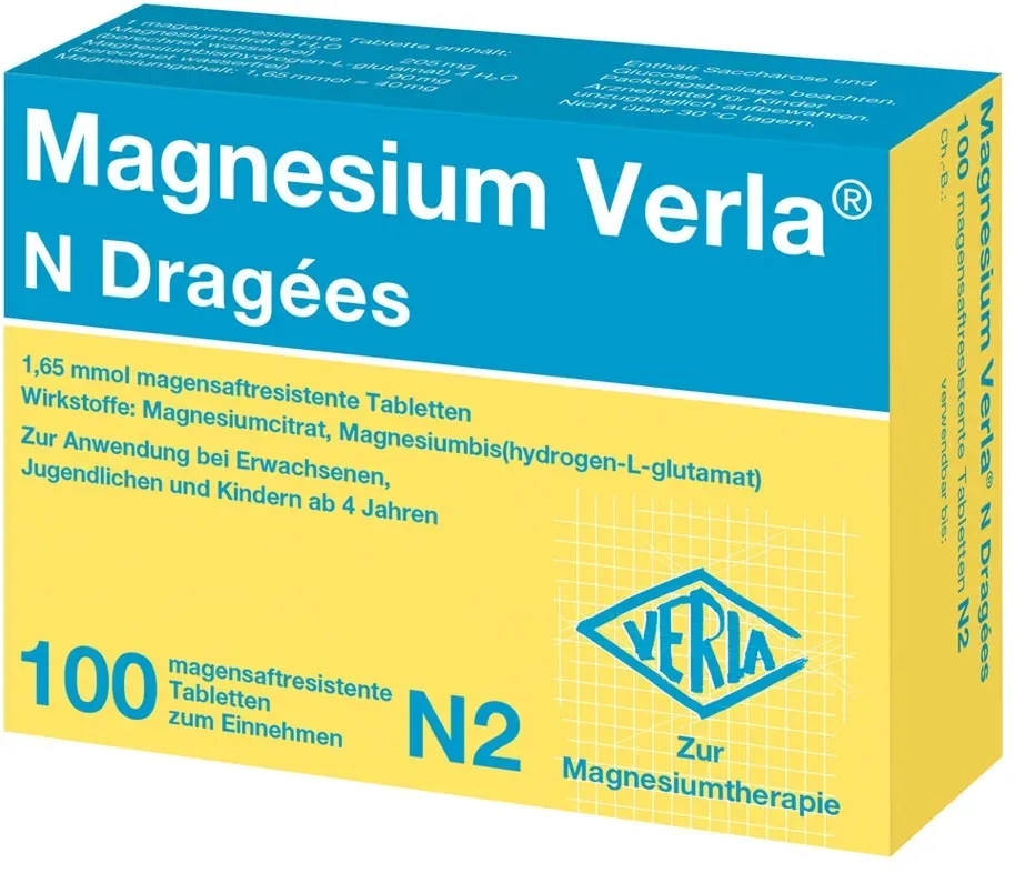 0,06 / 1 st - Kategorie: Arzneimittel - VERLA - GTIN:4150073305970 - PZN:07330597 - Magnesium Verla N Dragees 10X100 St von Verla-Pharm Arzneimittel GmbH & Co. KG günstig bei Ihrer Beraterapotheke bestellen - 57,48 Euro bei Beraterapotheke - gefunden von billiger.de Dieses Angebot für 20x50 Stück zu 59.95 Euro ist eine solide Wahl für regelmäßige Anwender, die eine größere Menge benötigen. ![]() ![]() Magnesium Verla N Dragees 20X50 St Tabletten magensaftresistent