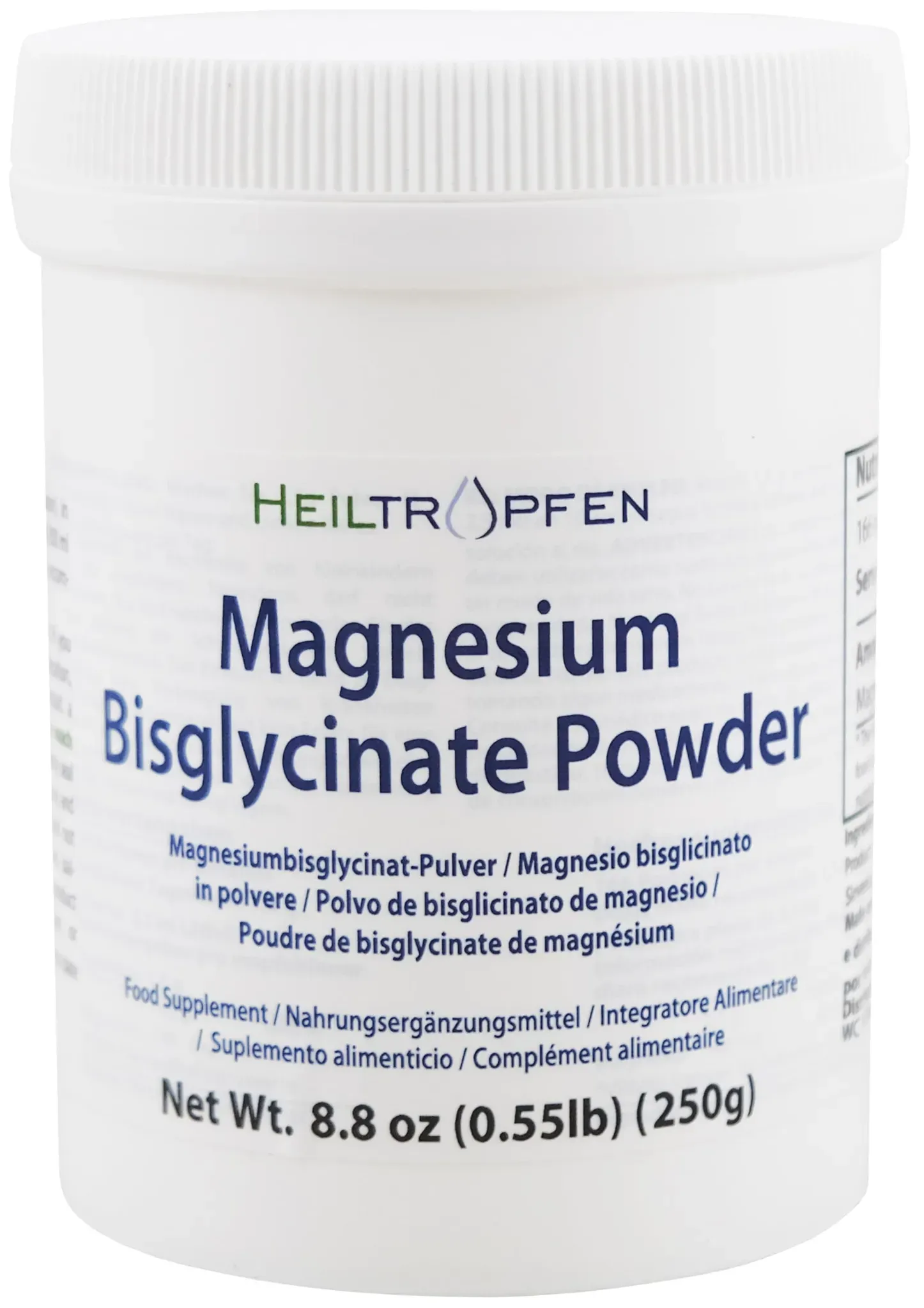 Kategorie: Nahrungsergänzungsmittel - luto supplements - GTIN:8721055251354 - HOCHWERTIGE AUFNAHME & BIOAKTIV: Magnesium-Bisglycinat ist eine besonders gut resorbierbare Magnesiumform, die an Glycin gebunden ist für eine optimale Bioverfügbarkeit und eine sanfte Wirkung auf den Magen. UNTERSTüTZT MUSKELN & NERVENSYSTEM: Magnesium trägt zur normalen Muskelfunktion und zur gesunden Funktion des Nervensystems bei. 365 KAPSELN VORRAT FüR EIN GANZES JAHR: Mit einer Packung erhältst du eine Jahresration ideal für den täglichen Gebrauch und die langfristige Unterstützung von Muskeln, Nerven und Energieproduktion. 100% REIN & OHNE UNNöTIGE ZUSäTZE: Unsere Formel ist GMO-frei, glutenfrei und ohne künstliche Zusatzstoffe, damit du Magnesium in seiner reinsten und wirksamsten Form erhältst. - 19,90 Euro bei Amazon Marketplace Health & Personal Care - gefunden von billiger.de Dieses Angebot ist eine gute Wahl für Nutzer, die Magnesiumglycinat in Pulverform bevorzugen, was eine flexible Dosierung ermöglicht. ![]() ![]() Magnesiumglycinat Pulver als Magnesium bisglycinat 0,55 lb - 250 g | wasserlösliches Kristallpulver | Heiltropfen