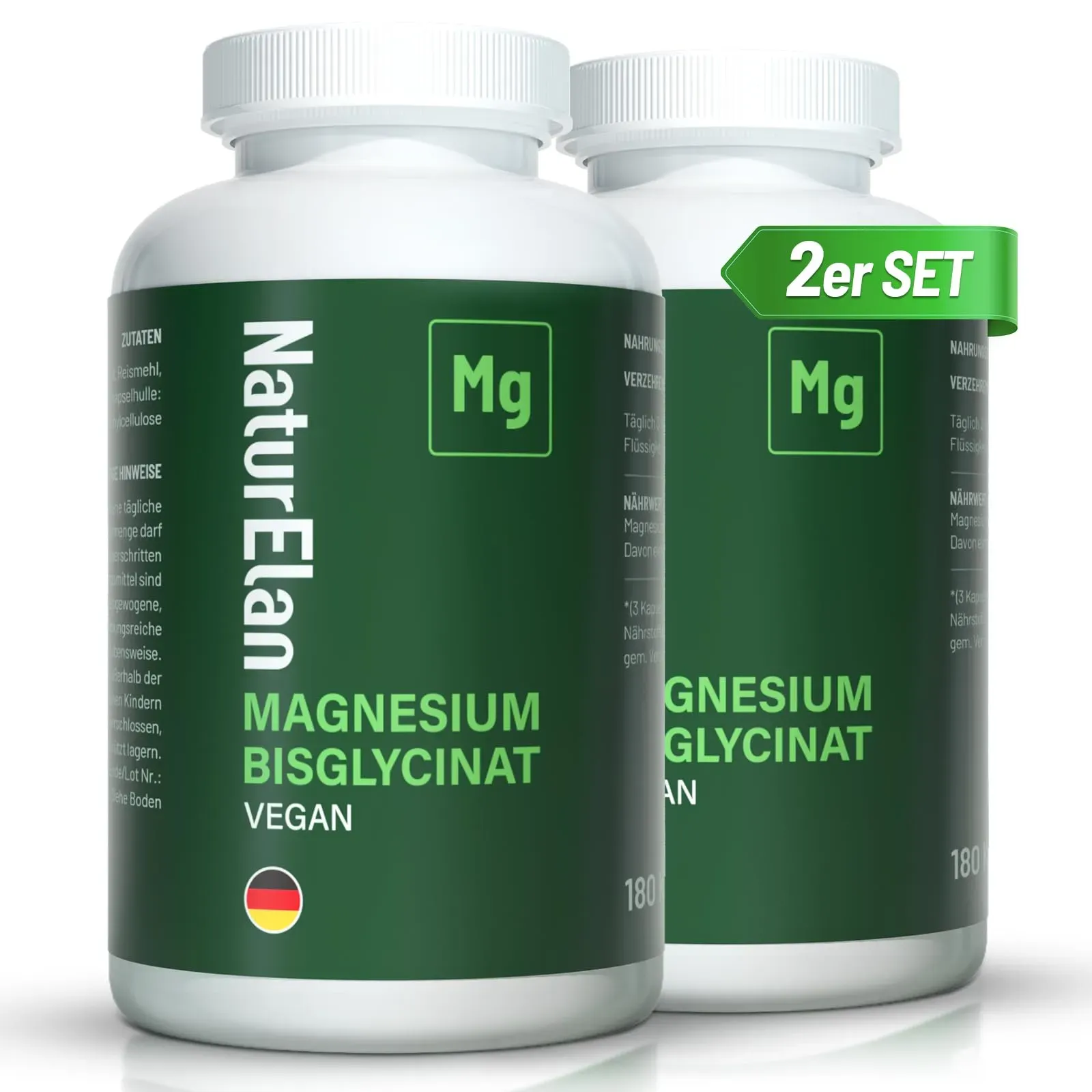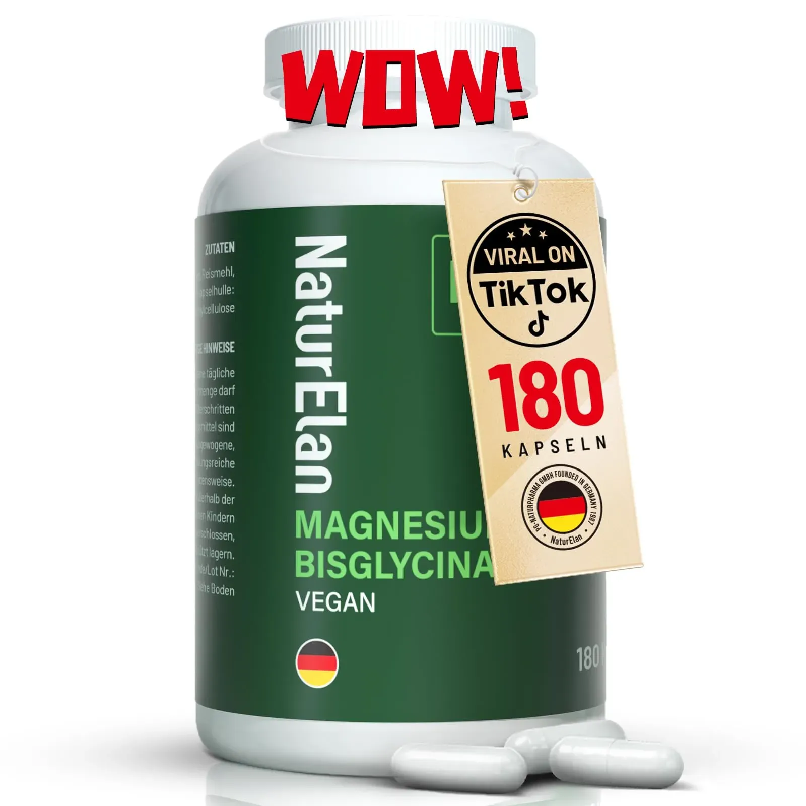 Kategorie: Nahrungsergänzungsmittel - healthyworld - GTIN:3830072114100 - Hohe Bioverfügbarkeit: Unser Nahrungsergänzungsmittel kombiniert Magnesium mit Glycin, was die Bioverfügbarkeit dieses wichtigen Mineralstoffs deutlich erhöht. Dies bedeutet, dass es leicht vom Körper absorbiert wird und somit effizient die Muskeln und Organe erreicht. Allseitige Unterstützung: Magnesiumglycinat trägt zur Erhaltung gesunder Muskeln bei, unterstützt das Nervensystem und reguliert die Muskelfunktion. Außerdem trägt es zur Energiegewinnung bei, verringert Müdigkeit und erhöht die Vitalität. Außergewöhnliche Formel: Glycin ist eine essentielle Aminosäure, die auch eigenständig zur Unterstützung des Schlafs verwendet wird. Die Kombination mit Magnesium sorgt für zusätzliche Wirksamkeit, da sich die beiden Verbindungen perfekt ergänzen. Magnesiumglycinat ist für seine milden Eigenschaften bekannt und wird von den meisten Menschen gut vertragen. Grosse Verpackung: Unsere Packung enthält 180 Kapseln mit je 125 mg hochwirksamen Magnesium. Das reicht für eine kontinuierliche Versorgung von bis zu 3 Monaten. Für eine maximale Wirksamkeit empfehlen wir die Einnahme von zwei Kapseln pro Tag. Pflanzenkapseln: Bei der Formulierung unserer Nahrungsergänzungsmittel achten wir auf höchste Qualität, weshalb wir Pflanzenkapseln verwenden. Diese Kapseln sind umweltfreundlich und leicht zu schlucken, was die tägliche Einnahme bequem und nachhaltig macht. - 14,99 Euro bei Amazon Marketplace Health & ... Eine Premium-Option mit chelatiertem Magnesiumglycinat für optimale Bioverfügbarkeit. ![]() ![]() NaturElan Magnesium Bisglycinat Kapseln - 300mg Magnesium pro Tagesdosis, 180 Vegan Kapseln, Premium: Chelatiertes Magnesiumglycinat, hochdosiert