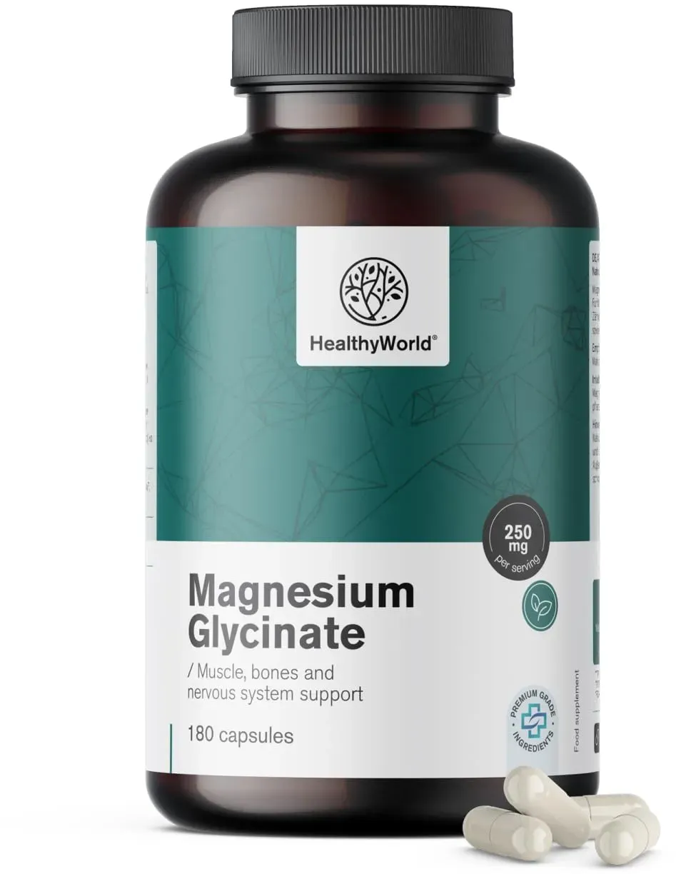 Kategorie: Nahrungsergänzungsmittel - luto supplements - GTIN:8721055251354 - HOCHWERTIGE AUFNAHME & BIOAKTIV: Magnesium-Bisglycinat ist eine besonders gut resorbierbare Magnesiumform, die an Glycin gebunden ist für eine optimale Bioverfügbarkeit und eine sanfte Wirkung auf den Magen. UNTERSTüTZT MUSKELN & NERVENSYSTEM: Magnesium trägt zur normalen Muskelfunktion und zur gesunden Funktion des Nervensystems bei. 365 KAPSELN VORRAT FüR EIN GANZES JAHR: Mit einer Packung erhältst du eine Jahresration ideal für den täglichen Gebrauch und die langfristige Unterstützung von Muskeln, Nerven und Energieproduktion. 100% REIN & OHNE UNNöTIGE ZUSäTZE: Unsere Formel ist GMO-frei, glutenfrei und ohne künstliche Zusatzstoffe, damit du Magnesium in seiner reinsten und wirksamsten Form erhältst. - 14,90 Euro bei Amazon Marketplace Health & Personal Care - gefunden von billiger.de Dieses Produkt bietet eine gute Menge an Kapseln für einen 3-Monats-Vorrat zu einem fairen Preis. ![]() ![]() HealthyWorld Magnesiumglycinat 250 mg - 180 Pflanzenkapseln - Für mehr Energie und Muskelunterstützung - Training, Fitness und Immunsystem - 125 mg Magnesium pro Kapsel - 3 Monatsvorrat