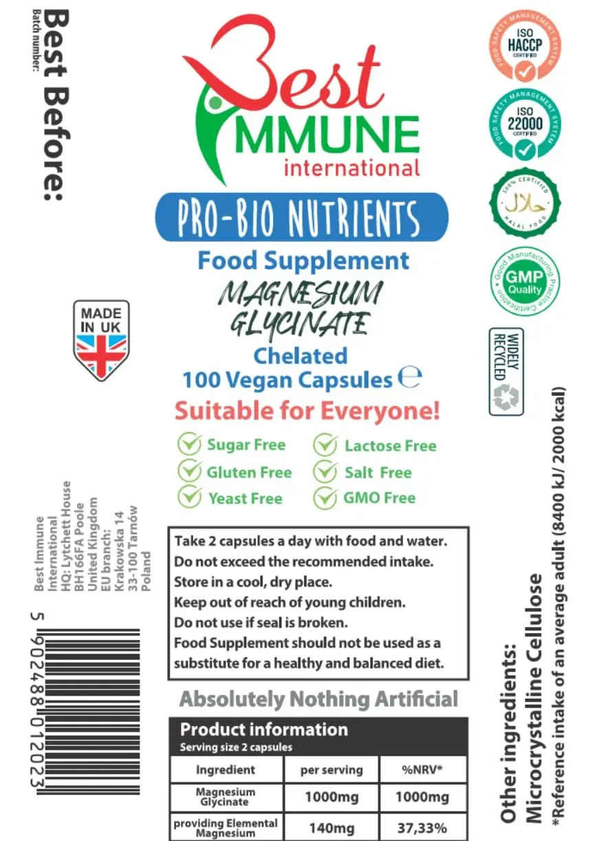 Zustand: Neu - 71,92 € / kg - Magnesium Magnesiumpräparate - Horbäach Horbaach - HI45580 - EAN: 5056370305745 - HOHE STÄRKE UNTERSTÜTZUNG: Jede tägliche Portion wurde so formuliert, dass sie das Äquivalent von 1000 mg reinem Magnesiumglycinat liefert und 200 mg elementares Magnesium liefert. MÄCHTIGES MINERAL - Magnesium hilft bei der Verringerung von Müdigkeit/Erschöpfung und unterstützt gesunde Knochen und Zähne. Fördert die Muskelfunktion: Magnesium ist ein essentieller Mineralstoff für diejenigen, die täglich trainieren, da es die normale Muskelfunktion und Proteinsynthese unterstützt. GEEIGNET FÜR: Horbaach Magnesiumglycinat-Tabletten enthalten keine künstlichen Konservierungsstoffe, sind vegan und vegetarisch und sowohl für erwachsene Männer als auch für Frauen geeignet. Die Verpackung kann variieren: Wir sind dabei, unsere Verpackung zu aktualisieren. Sollte das Produkt, das Sie erhalten, anders aussehen, können Sie sicher sein, dass die Vorteile gleich bleiben. Wenn Ihr Produkt außerdem auf Englisch etikettiert ist, finden Sie zur Vereinfachung ein abziehbares Etikett mit sechs weiteren Sprachen. - Verkäufer: Horbaach im amazon.de Marketplace Eine preiswerte vegane Option in umweltfreundlicher Verpackung. ![]() ![]() Best Immune International Natürliches Magnesiumglycinat 500 mg 100 Vegane Kapseln in öko-Verpackung