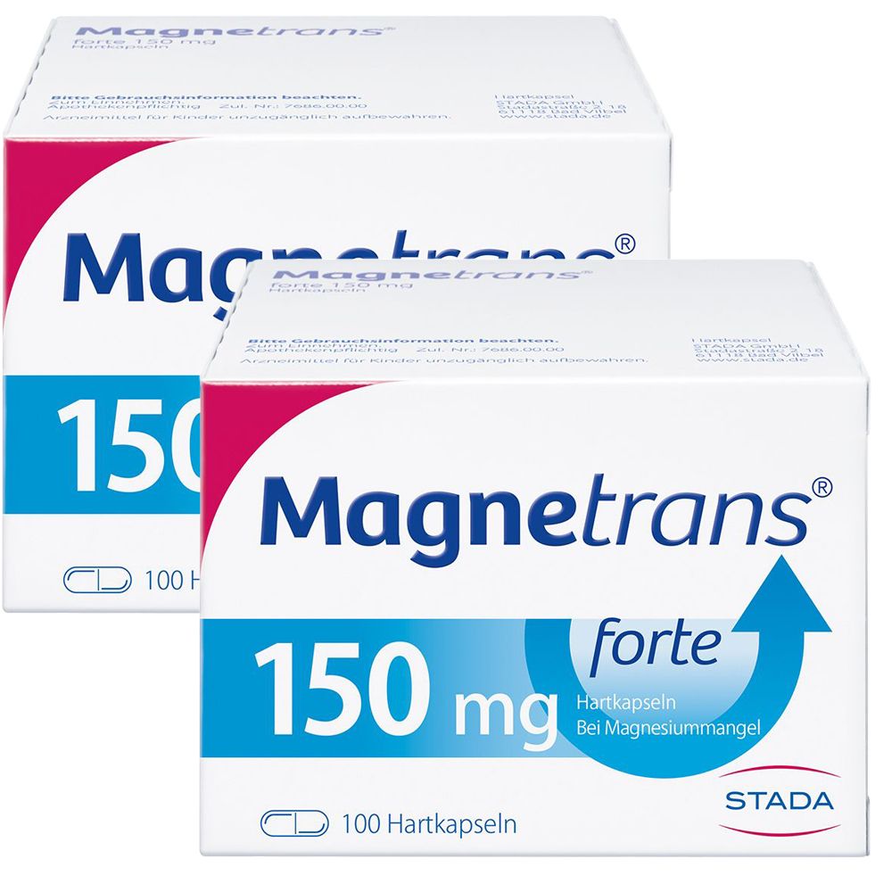 STADA Consumer Health - Magnetrans forte 150 mg Magnesium Hartkapsel 100 stk - bei apotheke.de - aus Yadore Produktdaten Dieses Doppelpack von SHOP APOTHEKE bietet eine größere Menge zu einem guten Gesamtpreis. ![]() 2x Magnetrans forte 150 mg 2x100 St Hartkapseln