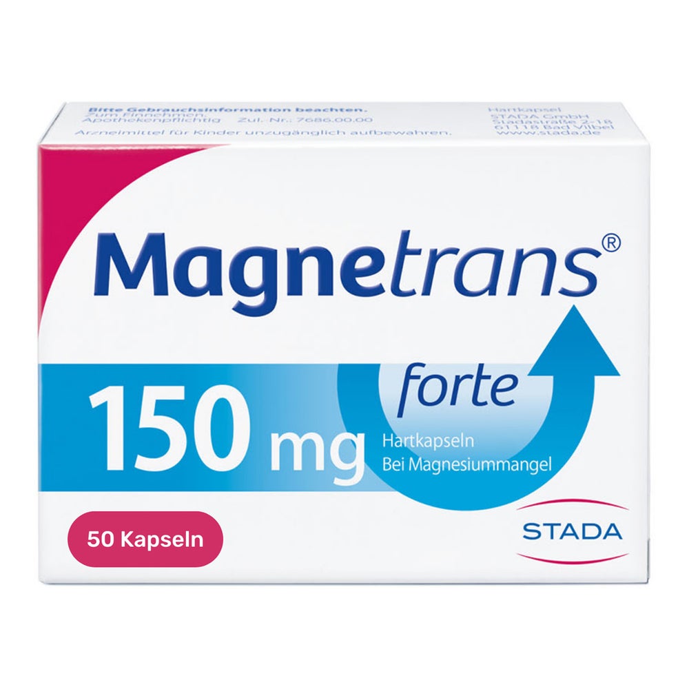 Magnetrans forte 150mg magnesium META PreisvergleichMit dem Meta-Preisvergleich suchen Sie gleichzeitig bei den großen Preisvergleich Portalen!Jetzt live Suche nach magnetrans forte 150mg magnesium starten! Magnetrans forte 150mg magnesium KaufberatungMagnetrans Forte 150mg - KaufberatungMagnetrans Forte 150mg ist ein Magnesium-Präparat in Hartkapseln-Form zur Behandlung von Magnesiummangel. Hier sind die wichtigsten Punkte für Ihre Kaufentscheidung: Wichtige Hinweise zur AnwendungNebenwirkungen bei normaler Dosierung:[1][2] Bei intakter Nierenfunktion treten bei bestimmungsgemäßer Anwendung kaum Nebenwirkungen auf. Die häufigsten möglichen Nebenwirkungen sind: Bei Durchfall: Die Behandlung sollte vorübergehend unterbrochen werden; nach Normalisierung des Stuhls kann die Behandlung mit reduzierter Dosis fortgesetzt werden.[2][4] Kontraindikationen und VorsichtsmaßnahmenDas Präparat sollte nicht verwendet werden bei:[1][4]