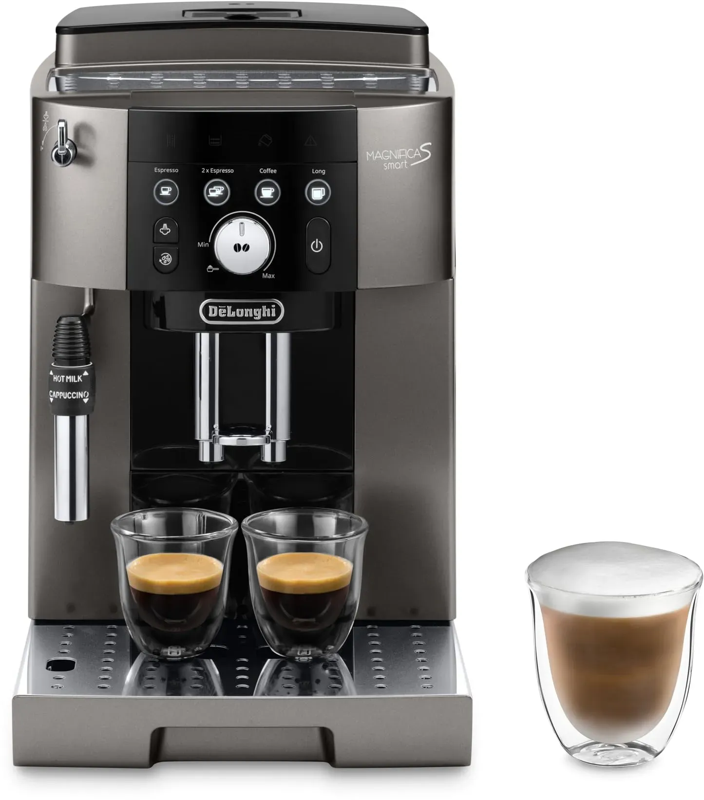 Gewöhnlich versandfertig in 2 bis 3 TagenDe'Longhi Magnifica S Smart ECAM250. 33. TB, Automatische Kaffeemaschine mit Milchaufschäumer, Kompakt, Bean-to-Cup Kaffeevollautomat, Manuelles Milchaufschäumen, 4 One-Touch Rezepte, Titan Schwarz
