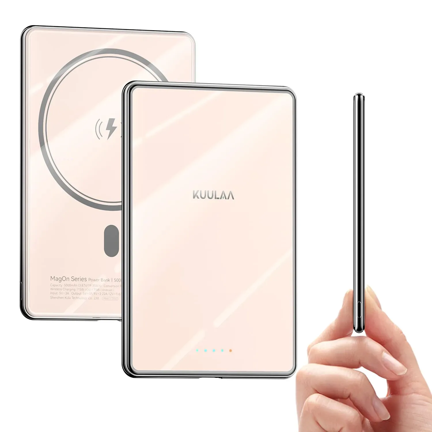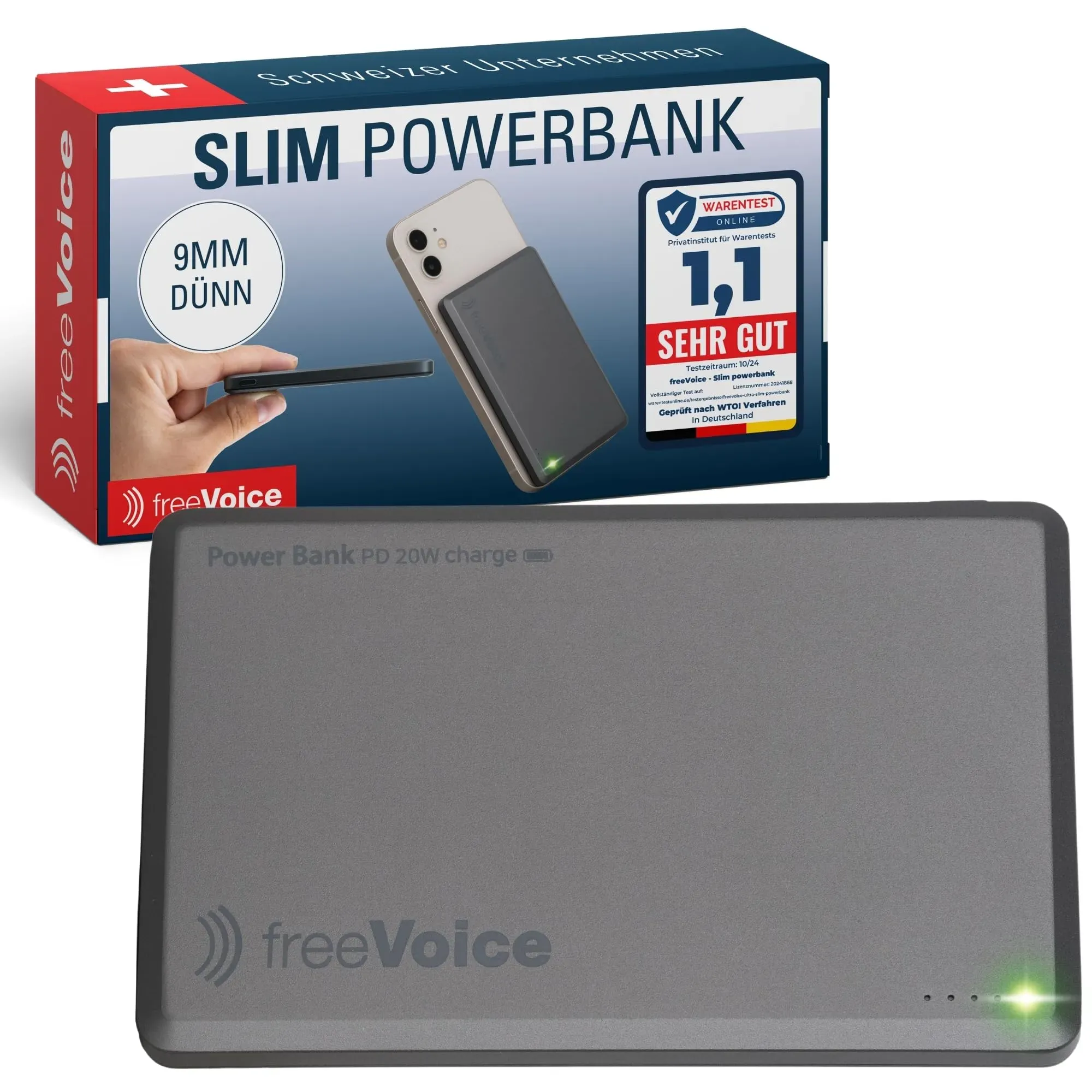 Kategorie: Powerbanks - Kuulaa - Ultra Slim Power Bank Die leichteste und dünnste magnetische Power Bank auf dem Markt, weniger als 7,2mm dick und wiegt nur 109g, Es kann leicht in jeder Tasche gespeichert werden, und die 5000mAh Kapazität ist genug für den täglichen Gebrauch! Mehr spezielle entworfen, können Sie nur schnappen auf und Macht würde automatisch auf, leicht charging.Very geeignet für jedes Flugzeug Check-in, und Outdoor-Abenteuer wie Camping, Wandern.,etc Kabelloses und kabelgebundenes Schnellladen Die Power Bank für Mag-Safe kann Ihr iPhone per kabellosem Laden in 30 Minuten auf 55 % aufladen, insbesondere für die iPhone-Serien 15/14/13/12, was 3,5-mal schneller ist als Original-Telefonladegeräte. Es ist normal, dass es beim Laden heiß wird, genau wie das Original. Wir haben den USB-C-Ausgang beibehalten, falls Sie 20 W Schnellladen wünschen, das das iPhone in 30 Minuten auf 70 % auflädt. Strong Magnetic Power Bank Dieses kabellose Akkupack nutzt die fortschrittliche und innovative magnetische Saugtechnologie von 2024 mit einer Magnetkraft von bis zu 10N, die fest am Telefon angebracht werden kann. Dank der dünnen und leichten Bauweise können Sie Ihr Handy mit einer Hand aufladen. Sie können es kaum spüren. [Hinweis: Die magnetische Ladefunktion der Powerbank ist NUR mit der Mag-safe Hülle der iPhone 16/15/14/13/12 Serie kompatibel. Luxuriöse TexturHautfreundliche Haptik Die Rückseite ist aus gehärtetem Glas kann Kratzer verhindern, was die Robustheit der ... Die freeVoice Slim Powerbank ist mit 5000 mAh und 9 mm Dicke extrem schlank und perfekt für Nutzer, die Wert auf Portabilität legen. ![]() ![]() freeVoice Slim Powerbank 5000 mAh I Handy-Powerbank in 9 mm I Induktives Ladegerät kompatibel mit MagSafe I Schnellladung mit Leistung bis 20 Watt I USB-Powerbank für Alltag & Reisen