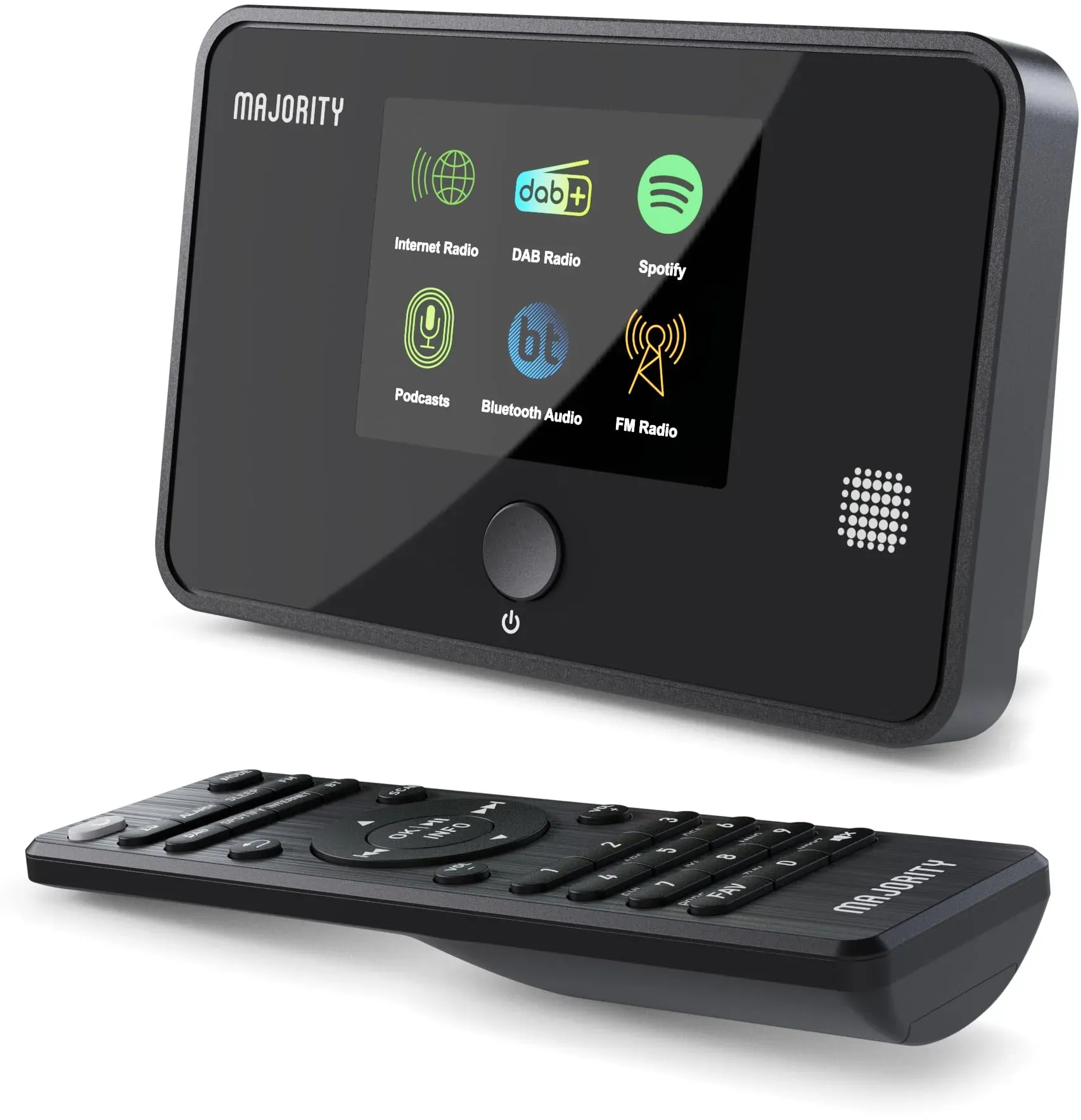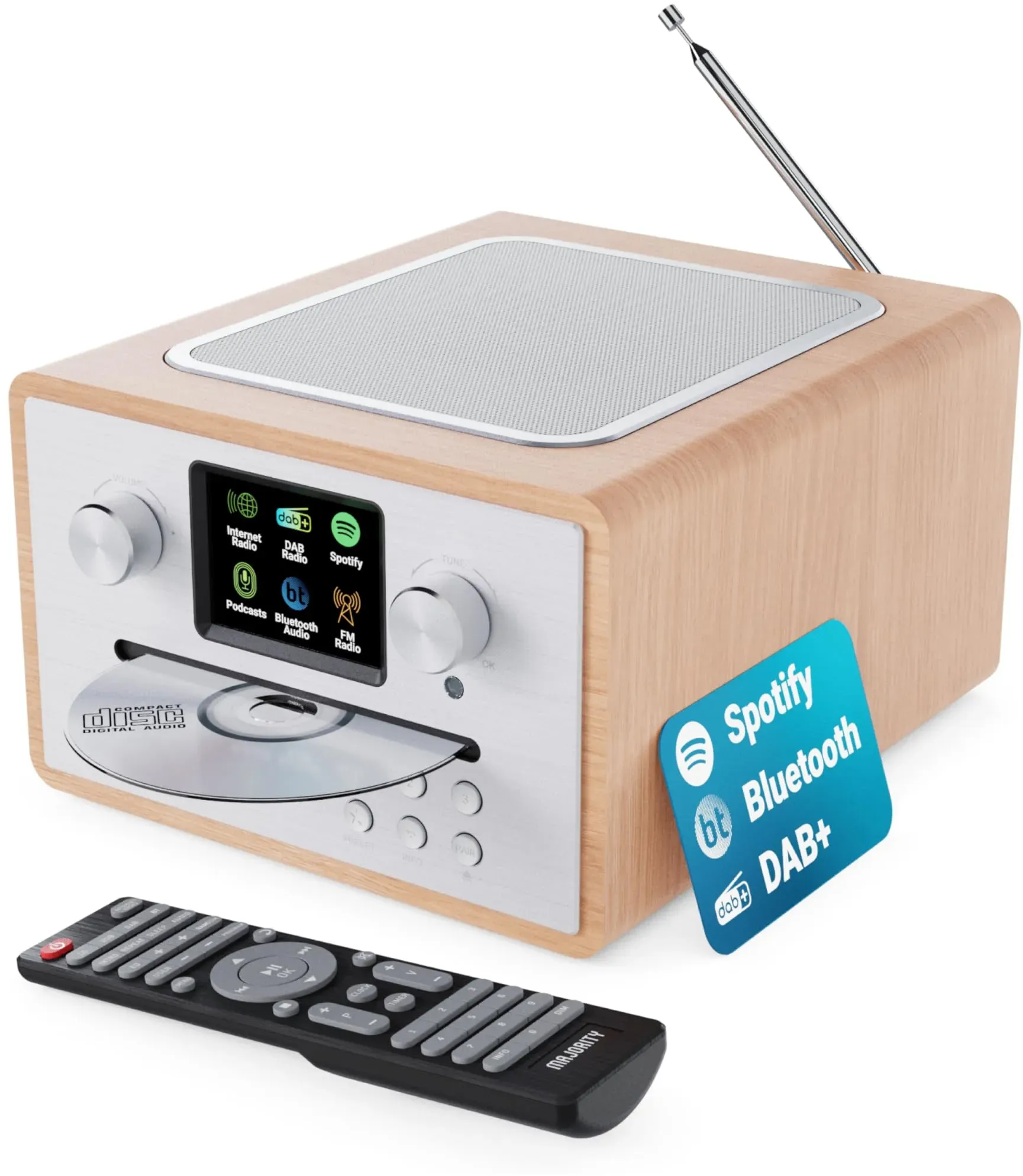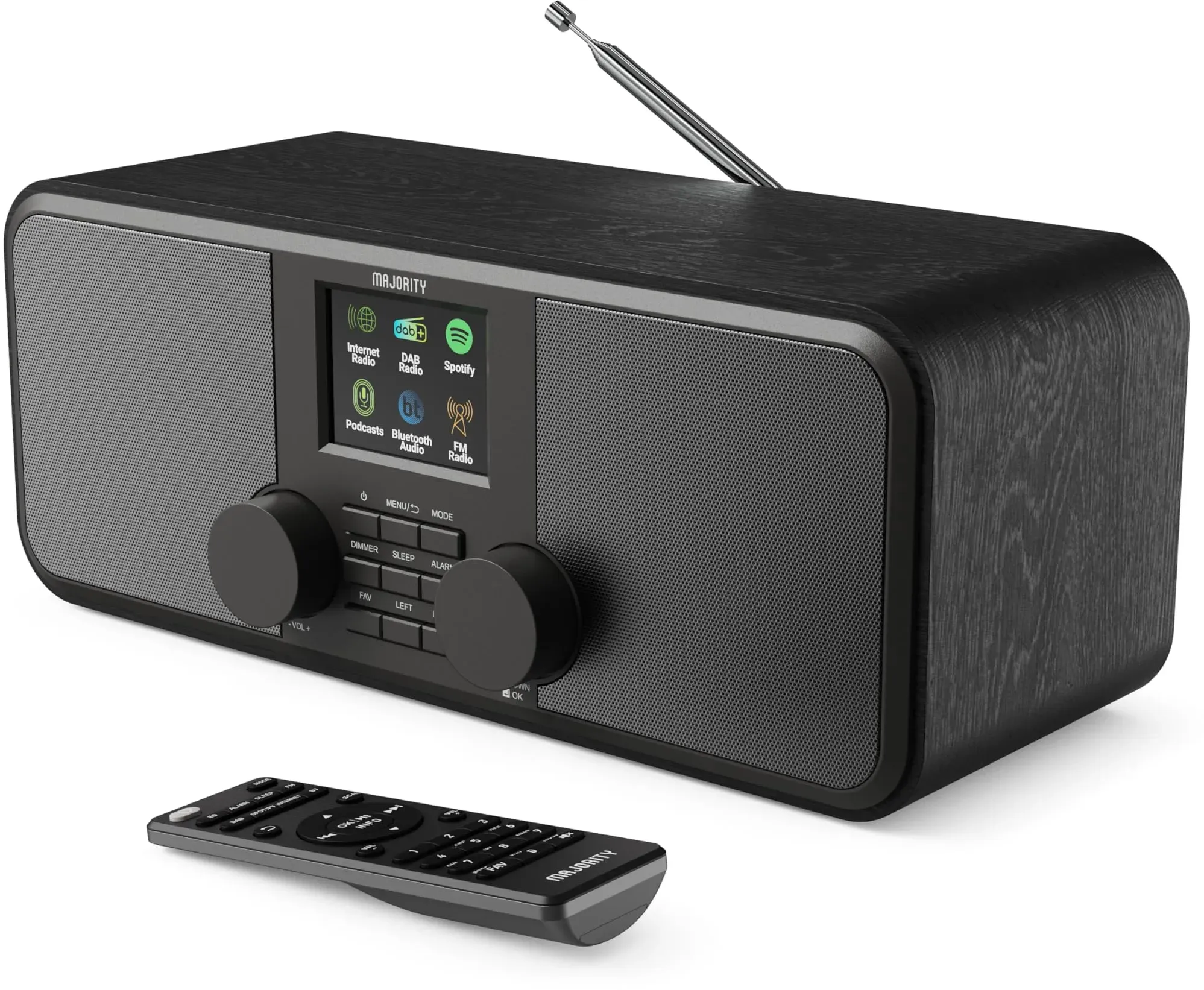 Kategorie: CD-Radios - MAJORITY - GTIN:5056444108197 - KLANGSTARKES DAB RADIO MIT BLUETOOTH: Genießen Sie beeindruckenden 100W 2.1-Sound über zwei Lautsprecher und einen internen Subwoofer. Unser dab+ radio mit bluetooth eignet sich perfekt als küchenradio, digitalradio und internetradio klein für hochwertige Musik in jedem Raum. VIELFäLTIGE VERBINDUNGSMöGLICHKEITEN: Streamen Sie Ihre Lieblings-Podcasts oder nutzen Sie Spotify Connect über unser wlan radio mit bluetooth. Unser radio dab plus internetradio wlan bietet Zugriff auf internet radios weltweit und sorgt für nahtloses Hörerlebnis. INTUITIVE BEDIENUNG: Steuern Sie das internet radio wlan bequem per radio mit fernbedienung. Das dab radio mit fernbedienung bietet Ihnen einfachen Zugriff auf internetradio wlan, dab+ radio, und digitalradio dab plus für Ihre Lieblingssender. UMFASSENDE AUSWAHL AN RADIOSENDERN: Unser radio dab+ empfängt tausende von internet radios. Nutzen Sie das dab bluetooth radio als digital radio oder internet radio mit bluetooth wlan und erleben Sie verlustfreien Klang mit unserem wlan-radio, ideal für jeden Musikliebhaber. WAS IST IN DER BOX: Dieses Paket enthält 1x Bard 1x Netzkabel, 1x Fernbedienung, 1x 3,5mm AUX-Kabel und eine leicht verständliche Bedienungsanleitung. Abmessungen: 23,5 x 12,8 x 13,5cm; 2kg - 149,95 Euro bei Amazon Marketplace CE - gefunden von billiger.de Der Majority Fitzwilliam ist ein hochwertiger Internetradio-Tuner für Stereoanlagen, der DAB+, Spotify Connect und Podcasts unterstützt. ![]() ![]() Radio DAB Plus Internetradio WLAN Tuner | DAB+ Internet Radio Receiver | Empfänger für Stereoanlage | Internetradio Adapter HiFi-Tuner mit Spotify Connect & Podcasts | MAJORITY Fitzwilliam (Schwarz)