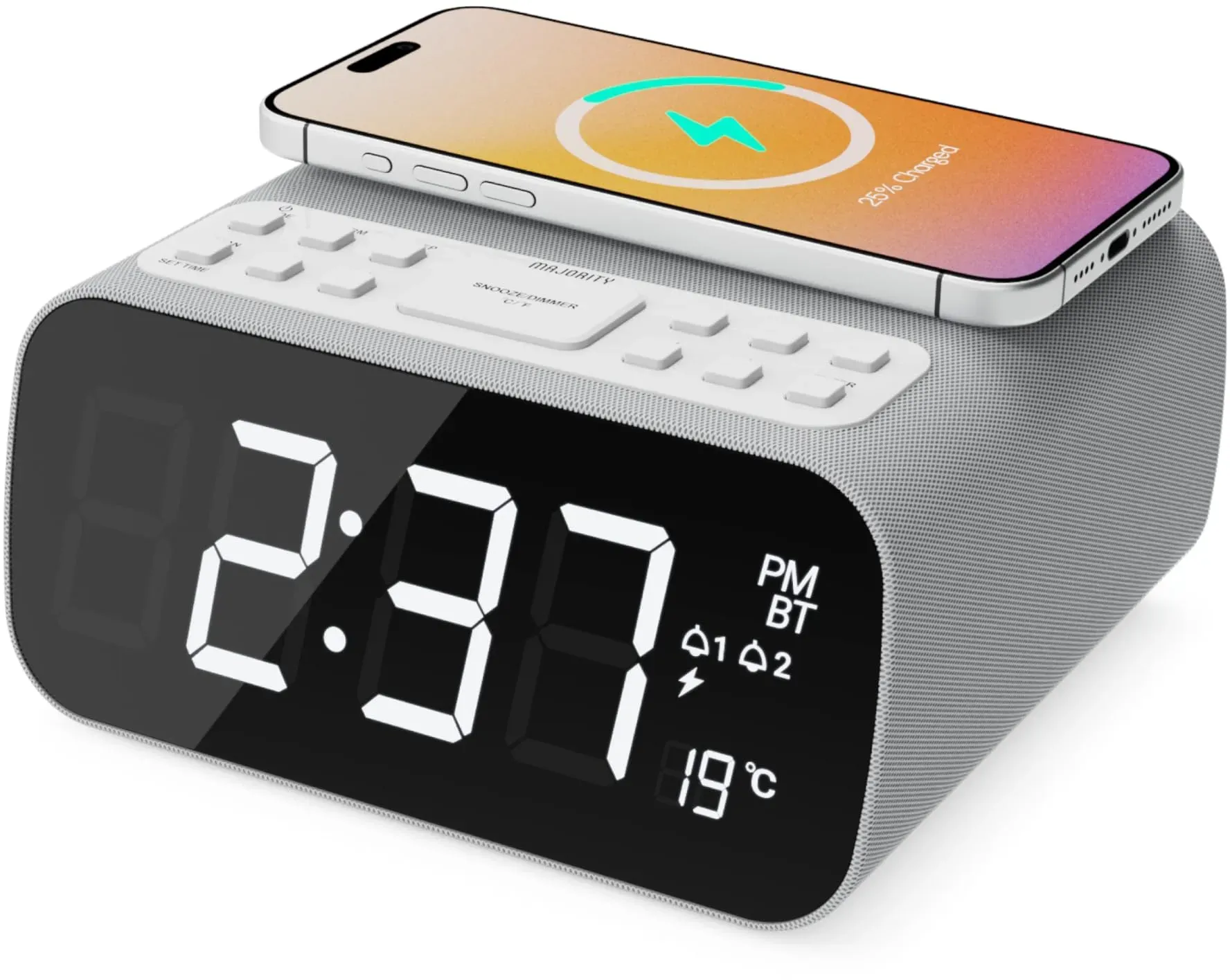 Kategorie: Wecker - MAJORITY - GTIN:5056444110534 - KABELLOSES & USB-AUFLADEN: Laden Sie Ihr Handy über Nacht (3-4 Stunden) kabellos von 0-100 % auf oder verwenden Sie den USB-Ladeanschluss, um jedes Gerät mit einem Kabel schnell aufzuladen. Beide Ladefunktionen können gleichzeitig verwendet werden, um zwei Geräte auf einmal zu laden. BLUETOOTH, DAB+ & FM: Der Knapton bietet nahtlose Bluetooth-Kopplung, um Ihre bevorzugten Audioinhalte von Smartphones und anderen Geräten sofort zu übertragen. Zusammen mit den DAB+- und UKW-Funktionen können Sie mit der Musik aufwachen, die Sie mögen. GROSSBILDSCHIRM UND DIMMBARE BELEUCHTUNG: Dieser Radiowecker sorgt dafür, dass Sie ihn von überall in Ihrem Schlafzimmer aus gut ablesen können. Dank der dimmbaren Beleuchtung können Sie die Helligkeit ganz nach Ihrem Geschmack einstellen und so die perfekte Atmosphäre zum Einschlafen oder sanften Aufwachen schaffen. LAUTER DOPPELALARM & SCHLUMMERFUNKTION: Sie können zwei separate Weckzeiten für Menschen mit unterschiedlichen Zeitplänen einstellen und so einen individuellen Start in den Tag gewährleisten. Der laute Wecker sorgt dafür, dass Sie nicht verschlafen, während die Schlaf- und Schlummerfunktion Flexibilität für die zusätzlichen Minuten der Ruhe bietet. WAS IST IN DER BOX: Dieses Paket enthält: 1 Majority Knapton Radio, einen Netzadapter, eine F-Typ DAB-Antenne und ein Benutzerhandbuch. Paket Abmessungen; 13.8cm x 13.8cm x 6.9cm, 750G. - 44,95 Euro bei Amazon Marketplace CE - gefunden ... Diese Soundbar mit integriertem Subwoofer und 120W Leistung bietet ein beeindruckendes Klangerlebnis für den Fernseher. ![]() ![]() MAJORITY Snowdon Soundbar für TV Geräte | Soundbar Bluetooth | 120W 2.1 TV Lautsprecher für Fernseher | TV Soundbar mit Intergriertem Subwoofer | Soundsystem für Fernseher | 81CM Sound Bar (Schwarz)