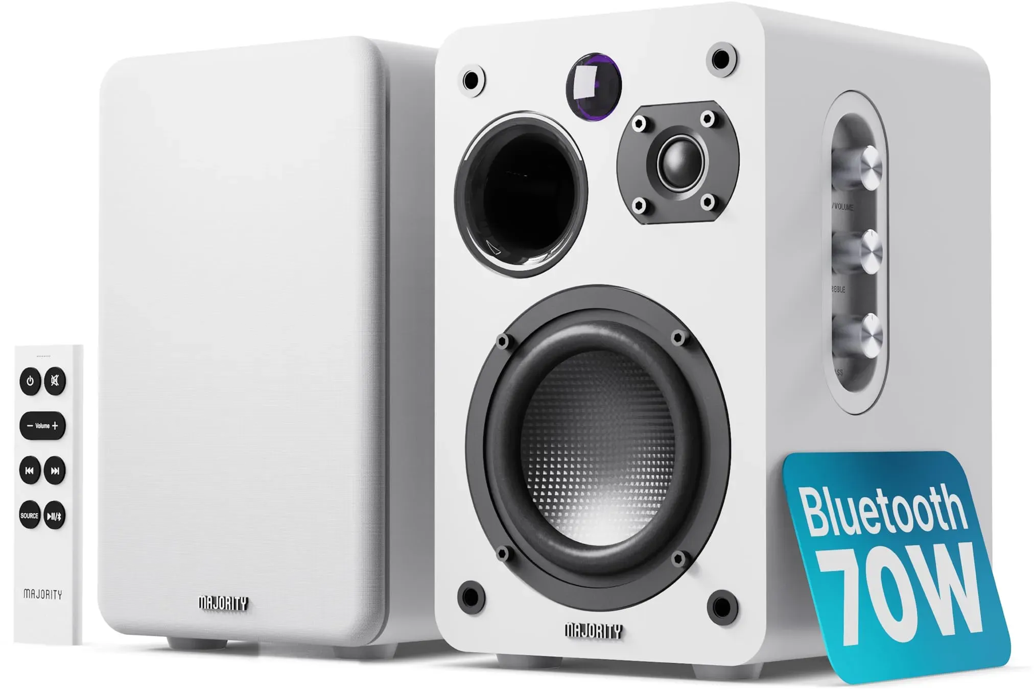 Kategorie: Lautsprecher - MAJORITY - GTIN:5056444113450 - 70-W-DUALTREIBER, KOHLEFASERKEGEL:Die leistungsstarken Aktivlautsprecher liefern 70W kristallklaren Klang. Zwei Dual Drivers mit Carbon fibre speaker cones sorgen für präzisen HiFi-Sound ideal als Studio Monitor, Regallautsprecher oder hochwertige Desktop Lautsprecher. BLUETOOTH: Verbinde dein Smartphone per Bluetooth mühelos mit den Aktiv Lautsprecher Boxen. Streame kabellos deine Lieblingsmusik direkt auf die Stereo Lautsprecher perfekt als PC Speaker, Speakers for PC oder Bluetooth Stereo Lautsprecher. FERNBEDIENUNG MIT BENUTZERDEFINIERTEM EQ: Steuere die aktiven Studio Lautsprecher komfortabel per Fernbedienung vom Sofa aus. Passe mit der benutzerdefinierten EQ-Steuerung die DJ Boxen exakt nach deinem Geschmack an dein optimales Soundsystem PC oder Lautsprecher für Monitor. WAS IST IN DER BOX: Dieses Paket enthält 2x Majority D70X Lautsprecher, Netzkabel, Fernbedienung, Lautsprecheranschlusskabel, Bedienungsanleitung. Produktabmessungen: H:23cm x L:17,5cm x B:14,5cm. Gewicht: 3,7kg - 99,95 Euro bei Amazon Marketplace CE - gefunden von billiger.de Diese DAB-Radio-Stereoanlage mit CD-Player, Bluetooth und 60W Leistung bietet ein umfassendes Musikerlebnis. ![]() ![]() MAJORITY DAB Radio mit CD Player und Bluetooth | 60W Stereoanlage | Kompaktanlage mit USB | CD Player HiFi | UKW Radio Musikanlage | Digitalradio mit CD Player & Fernsteuerung | Küchenradio | OAKCASTLE DAB500