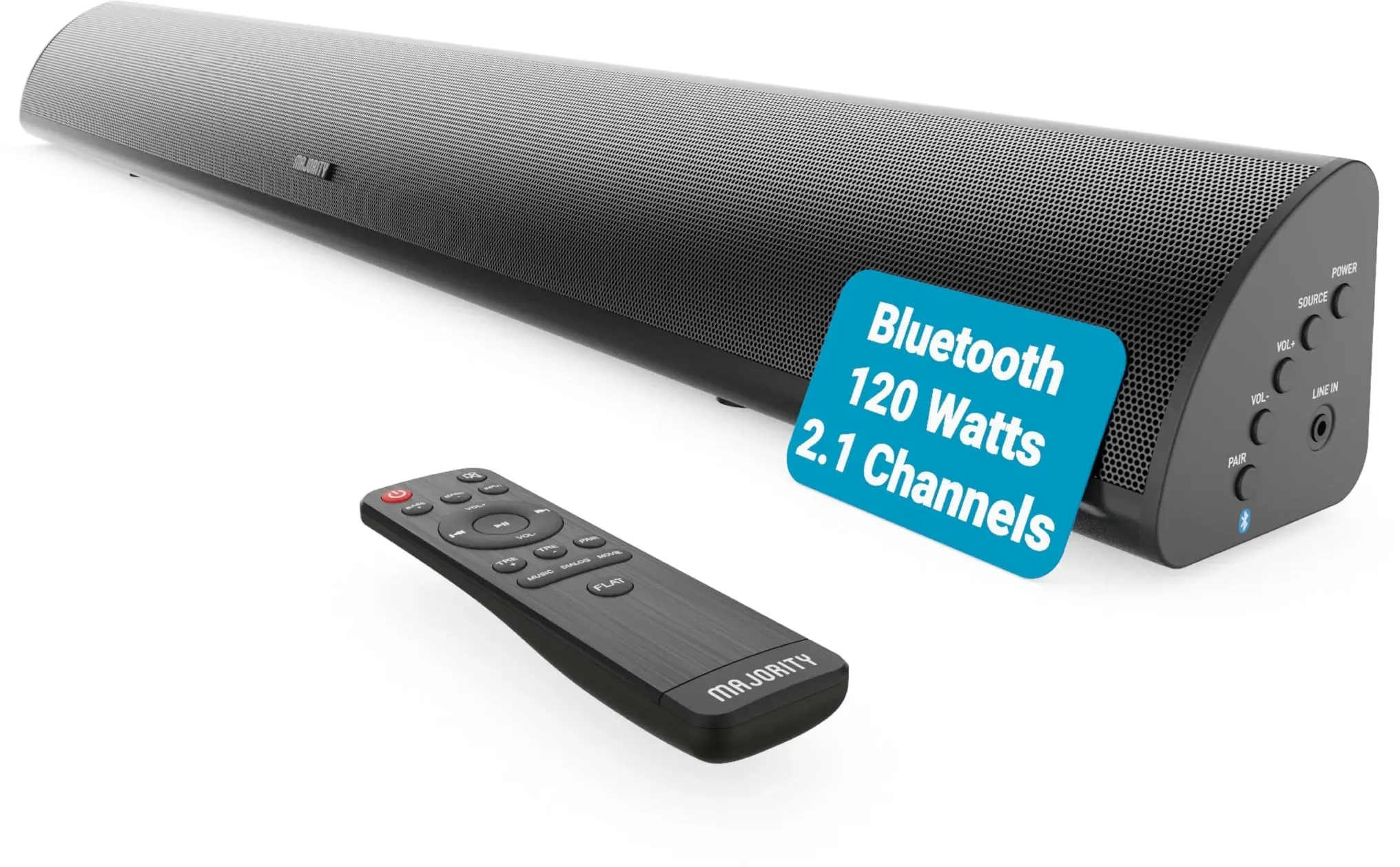 Kategorie: Surround-Systeme - MAJORITY - GTIN:5060508078722 - KLARER 2.0 STEREOKLANG KOMPAKT & KRAFTVOLL: Die Bowfell Soundbar liefert mit 50 W Leistung klaren Klang über ein 2.0 Stereo-System ideal zur Klangverbesserung bei Filmen, Musik oder Gaming auf kleinen bis mittelgroßen Fernsehern oder PCs. STABILE BLUETOOTH 5.0-VERBINDUNG: Einfaches kabelloses Streaming über Bluetooth für eine schnelle Verbindung mit kompatiblen Geräten wie Smartphones, Tablets, Laptops oder Bluetooth-fähigen TVs. Hinweis: Einige TV-Modelle unterstützen kein Audio über Bluetooth bitte prüfen Sie Ihre Gerätekompatibilität ,bluetooth best used when pairing with a device of same or higher bluetooth generation. INDIVIDUELL ANPASSBAR EQ-MODI & FERNBEDIENUNG: Wählen Sie zwischen FLAT, ROCK oder JAZZ Klangprofilen. Steuern Sie Lautstärke, Wiedergabe & Stummschaltung bequem per Fernbedienung. Die Lautstärke startet beim Einschalten auf einem mittleren Standardpegel ideal, um plötzliche Lautstärkeschwankungen zu vermeiden.Reichweite der Fernbedienung bis zu 6 Meter. VIELFäLTIGE ANSCHLüSSE AUX, OPTISCH & USB (NUR WIEDERGABE): Schließen Sie Ihre Geräte über 3.5 mm AUX, optischen Eingang (TOSLINK) oder USB (nur Wiedergabe) an. Die USB-Funktion unterstützt ausschließlich die Wiedergabe von MP3/WAV-Dateien (bis 64 GB). Für Geräte mit RCA-Ausgang ist ein 3.5 mm-zu-RCA-Adapterkabel im Lieferumfang enthalten. Einige Fernseher erfordern eine manuelle Einstellung der Audioausgabe prüfen Sie ggf. die ... Dieses Nachttischradio mit Bluetooth, kabellosem Laden und Doppelalarm ist perfekt für den Start in den Tag. ![]() ![]() MAJORITY Knapton | Nachttischradio mit Bluetooth | 15W kabelloses Laden & USB-Laden | DAB+ und FM | Lauter Doppelalarm, Schlaf- & Schlummerfunktion | Großes dimmbares, beleuchtetes LCD-Display