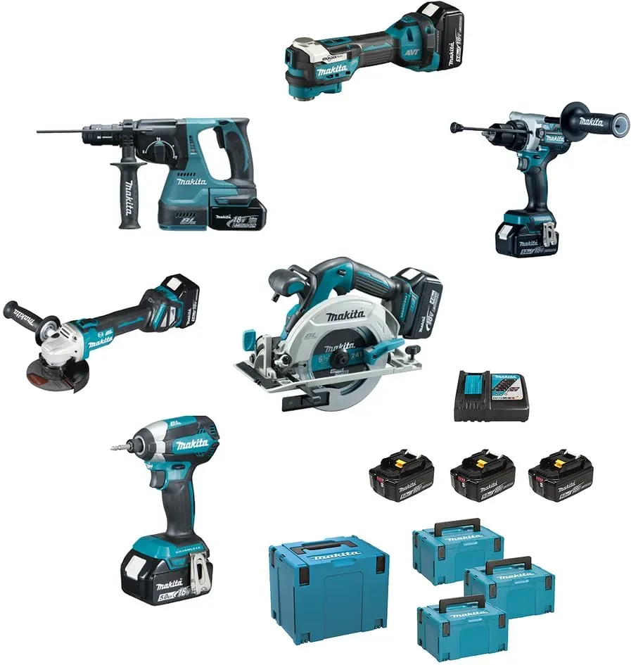 Kategorie: Laubsauger & Laubbläser - Makita - Typ handbetrieben, Blasfunktion, Saugerfunktion, Zerkleinern (beim Aufsaugen), Herstellungsland CHN, Antrieb batteriebetrieben, Lieferumfang Mit Akku, Doppelte Konfiguration, Motortyp batteriebetrieben, Batterietyp Li-Ion, Spannung 36V, Ampere Batterie 5Ah - 579,37 Euro bei agrieuro.de - gefunden von billiger.de Ein umfangreiches Combo Kit mit mehreren Werkzeugen, das sich für professionelle Anwender oder ambitionierte Heimwerker eignet, die eine breite Palette an Makita-Geräten benötigen. ![]() ![]() Combo Kit Makita DLX6126JX1 18V 5 Ah