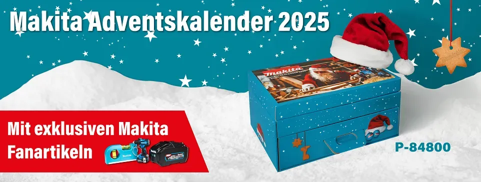 Kategorie: Adventskalender - Makita - GTIN:0197050366085 - Verschenken Sie echten Werkzeug-Spirit in der Vorweihnachtszeit mit dem limitierten Makita Adventskalender 2025 ! Ein Must-have für Makita-Fans und leidenschaftliche Handwerker: Hinter 24 Türchen warten exklusive Fanartikel, praktische Tools und kleine Highlights, die jedes Schrauberherz erfreu... - 83,50 Euro bei alango.de - gefunden von billiger.de Dieser Kalender für 84,77 Euro bietet 24 Makita Überraschungen und ist eine gute Standardoption. ![]() makita Adventskalender 2025, 24 Makita überraschungen bestehend aus hochwertigem Werkzeug & Zubehör