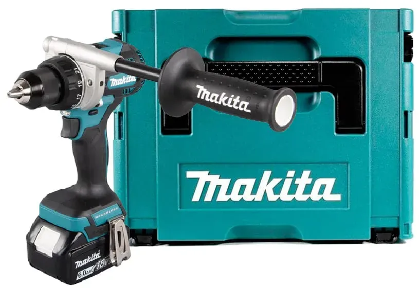Schraubendreher Gesamtsortiment Baumarkt + Garten Werkzeug + Werkstatt Elektrowerkzeug Schrauben + Bohren Bohrmaschine + Akkuschrauber Elektrowerkzeuge - EAN:0088381826426 - Makita DDF484RTE Akku-Bohrschrauber (inkl. 2x 5,0 Ah Akku + Schnellladegerät + Koffer). Kompakter Akku-Bohrschrauber mit nur 172 mm Länge, ideal für beengte Arbeitsbereiche. 21-stufige Drehmomenteinstellung und leistungsstarker bürstenloser 18-V-Motor. Lieferumfang: Makita DDF484RTE Akku-Bohrschrauber. 2x BL1850B - 18V 5,0 Ah (90 Wh) Li-Ionen Akku. 1x Schnellladegerät DC18RC. 1x Einhängebügel. 1x PH / LS - Doppelbit. 1x Transportkoffer Kunststoff. - gefunden von Kelkoo Ein sehr leistungsstarker Bohrschrauber mit hohem Drehmoment und einem 6Ah Akku, ideal für Profis und anspruchsvolle Projekte. ![]() ![]() MAKITA Ddf486 g1J Bohrmaschine Akkuschrauber 130 Nm Bl Lxt 18 V + 1 Akku 18 V 6 Ah Li-Ion Bl1860B + Makpac Koffer