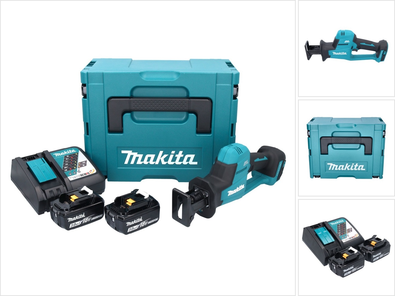EAN: 4064677071981 - Lieferumfang: - 1x Makita DJR 189 Akku Reciprosäge - 1x Reciproblatt BIM 152/7-18Z ( B-05038 ) - 1x Reciproblatt BIM 152/6-11Z ( B-05044 ) - 1x Reciproblatt HCS 203/6-10Z - 1x Makita BL 1860 B 18 V 6,0 Ah Akku ( 197422-4 ) - 1x Makita MAKPAC Kunststoffkoffer - 1x Universaleinlage - ohne Ladegerät Produktbeschreibung: Die Firma Makita bietet hier mit der DJR 189 eine Akku Reciprosäge die sich durch ihre kompakte Bauform optimal für ein arbeiten auf engem Raum eignet. Außerdem lässt sich, dank der neuen Anordnung des Griffes, die Kraft auch bei einhändiger Benutzung auf das Arbeitsmaterial zu übertragen. Dank der integrierten LED-Leuchte hat man auch immer einen optimalen Blick auf das Arbeitsmaterial. Durch den bürstenlosen Motor lässt sich die kompakte Bauform weiter unterstützen und außerdem die Langlebigkeit der Maschine erhöhen. Die Sägeblätter lassen sich schnell und werkzeuglos wechseln. Auch eine Motorbremse und eine Konstantelektronik zum aufrechthalten der Geschwindigkeit bei Belastung sind in dieser Säge enthalten. Die Firma Makita ist ein führender Hersteller für Elektrowerkzeuge aller Art, der sich vor allem durch seine hohe Verarbeitungsqualität und sein riesiges 18 V ökosystem auszeichnet. Technische Daten: Hersteller: Makita Herstellerbezeichnung: DJR 189 Akkuspannung: 18 V Leerlaufhubzahl: 0 - 3100 min Hubhöhe: 22 mm Max. Schnittleistung Holz 90 : 255 mm Max. Schnittleistung Rohr: 130 mm Gewicht inkl. Akku (EPTA): 2,2 - 2,5 kg ... Ein umfassendes Set mit zwei 3,0 Ah Akkus, Ladegerät und Makpac, das für unterbrechungsfreies Arbeiten sorgt. ![]() kaufland.d e Makita DJR 189 RFJ Akku Reciprosäge Säbelsäge 18 V Brushless + 2x Akku 3,0 Ah + Ladegerät + Makpac DJR189Z