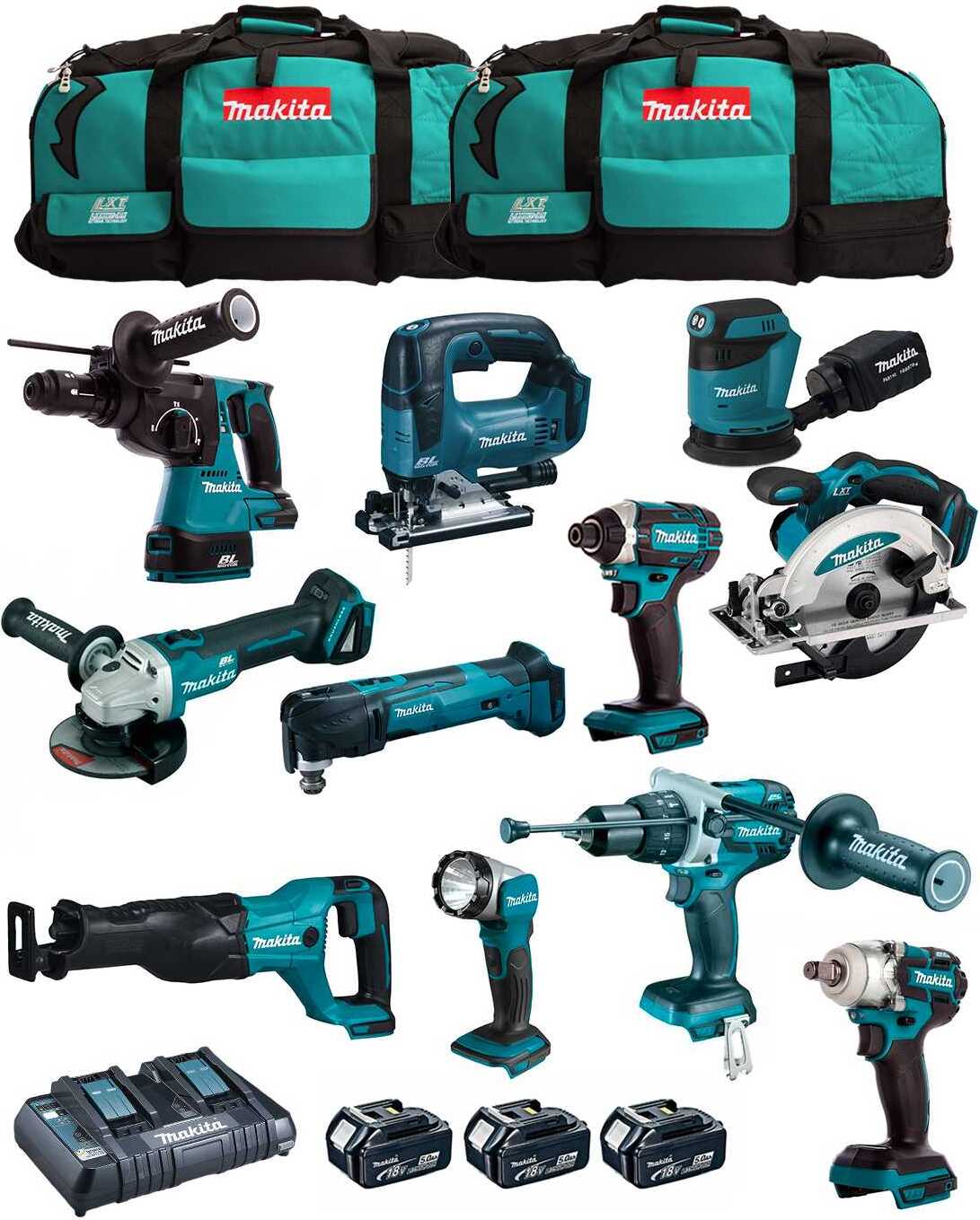 keine Angabe Sofort lieferbar, 2-4 Werktage in_stockMakita - Kit DLX6068PT (DHP453 + DTD152 + DHR202 + DJV180 + DSS611 + DML802 + 3 x 5,0 Ah + DC18RD + LXT600)