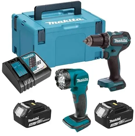 Werkzeuge Baustrahler Elektrogartenwerkzeug - EAN:4251766905177 - Makita DML815 LED-Akku-Handlampe + BL1830B 18V 3Ah + DC18RC - gefunden von Kelkoo Ein weiteres attraktives Kombo-Kit mit der DML815 und einem Bohrschrauber, inklusive Akkus und Ladegerät, ideal für den Einstieg oder die Erweiterung. ![]() ![]()