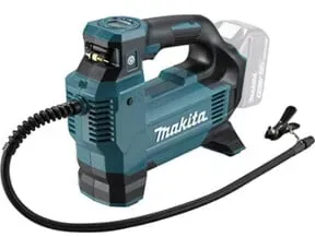 Adapter Kompressoren Werkzeug Werkstatt & Maschinen Kompressoren & Druckluftwerkzeuge Kompressoren Elektrowerkzeuge - EAN:4064677049645 - Lieferumfang: - 1x Makita DMP 181 Z Akku Kompressor - 1x Luftmatratzenadapter ( TE00000333 ) - 1x Ventiladapter französisch ( TE00000334 ) - 1x Ballpumpenadapter ( TE00000335 ) - 1x Ventiladapter Blitzventil ( TE00000346 ) - 1x Makita BL 1820 B 18 V 2,0 Ah Akku ( 197254-9 ) - 1x Makita DC 18 RC Akku Schnell Ladegerät 7,2 V - 18 V ( 195584-2 ) Produktbeschreibung: Der Makita DMP 181 Z Akku Kompressor ist der perfekte Begleiter wenn es um exaktes und effektives Aufpumpen von Reifen, Bällen und der Gleichen geht. Mit einem maximalen Druck von bis zu 11,1 bar und den drei Stufen ist er für sämtliche Arbeiten geeignet. Die verbaute LED Leuchte sorgt für ein gutes Ausleuchten der Umgebung bei schlechteren Lichtverhältnissen. Des Weiteren verfügt der 18 Volt Akku Kompressor über einen 65 cm langen Schlauch und diverse Ventile. Das Digitale Display ist aus allen Winkeln gut ablesbar. Darüber hinaus merkt sich der DMP 181 die Druckeinstellung von der letzten Nutzung. Entscheidend ist auch das - gefunden von Kelkoo Dieses Angebot ist das günstigste für den Makita DMP181 mit einem 5,0 Ah Akku ohne Ladegerät, ideal für Nutzer, die bereits ein Ladegerät besitzen und eine längere Laufzeit wünschen. ![]() Manomano.d e