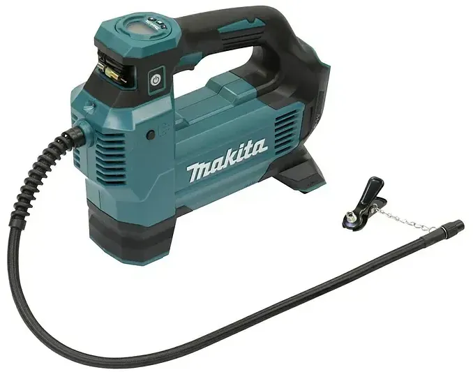 Kategorie: Kompressoren - Makita - GTIN:0088381748902 - Praktischer Akku-Kompressor mit 18 V zum schnellen und einfachen Befüllen von Reifen, Bällen uvm. 18 V Akku-Kompressor mit +/- Tasten zum exakten Voreinstellen des gewünschten Drucks, das Display zeigt zeitgleich den Ist- und Sollwert. Der Kompressor erreicht einen Druck von bis zu 11,1 bar und verfügt über drei Geschwindigkeitsstufen. Der Schlauch ist 0,65 m lang. Mit eingebauter LED zur Ausleuchtung des Umfelds. Inkl. diversen Ventiladaptern. Eigenschaften: Ideal zum Aufpumpen von Auto- und Fahrradreifen, Sportbällen und mehr Bei zu hohem Druck kann durch Drücken und Halten des Luftablassknopfs Luft abgelassen werden Digitales Display mit zusätzlichen praktischen Funktionen Die Maschine stoppt automatisch, wenn der Solldruckwert erreicht ist Das Gerät merkt sich die Druckeinstellung von der letzten Nutzung Akku-Kompressor mit 3 Stufen Lieferung inklusive verschiedener Arten von Ventiladaptern Lieferumfang: Makita Akku-Kompressor (DMP181Z) Schwimmreifenadapter (TE00000333) Ventiladapter französisch (TE00000334) Ballpumpenadapter (TE00000592) Ventiladapter Blitzventil (TE00000597) Registriere dein Elektrowerkzeug innerhalb von 4 Wochen nach Kauf auf Makita für Deutschland oder Makita für österreich und nutze die Vorteile der neuen Drei-Jahres- der Makita Werkzeug GmbH. - 109,89 Euro bei Contorion.de - gefunden von billiger.de Ein preiswertes Solo-Gerät, das eine gute Basis für den Einstieg in das Makita 18V System bietet. ![]() Makita Akku-Kompressor DMP181Z, 18Volt, Luftpumpe