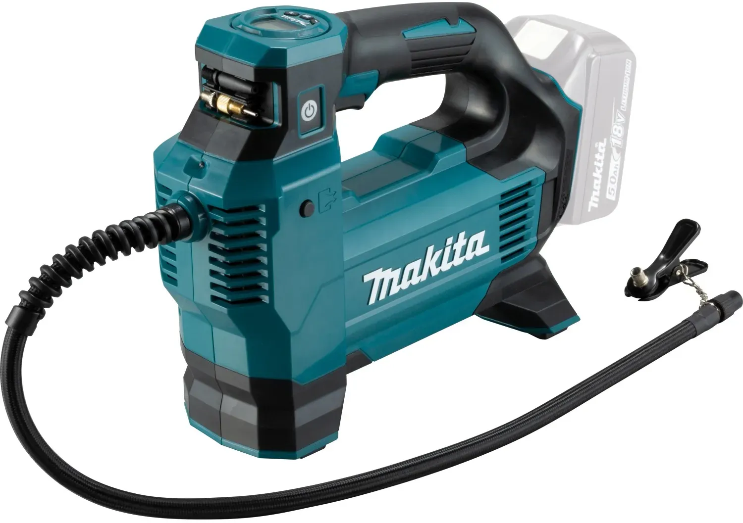 Kategorie: Kompressoren - Makita - GTIN:0088381748902 - Praktischer Akku-Kompressor mit 18 V zum schnellen und einfachen Befüllen von Reifen, Bällen uvm. 18 V Akku-Kompressor mit +/- Tasten zum exakten Voreinstellen des gewünschten Drucks, das Display zeigt zeitgleich den Ist- und Sollwert. Der Kompressor erreicht einen Druck von bis zu 11,1 bar und verfügt über drei Geschwindigkeitsstufen. Der Schlauch ist 0,65 m lang. Mit eingebauter LED zur Ausleuchtung des Umfelds. Inkl. diversen Ventiladaptern. Wenn Sie einen Gegenstand aufpumpen, der noch über ein Dunlopventil verfügt, zeigt die Maschine aufgrund der Eigenschaften des Ventils keinen genauen Wert an. Verwenden Sie beim Aufpumpen des Reifens o. ä. nicht den im Display angezeigten Wert, sondern pumpen Sie den Reifen auf, während Sie seinen Zustand überprüfen. Ideal zum Aufpumpen von Auto- und Fahrradreifen, Sportbällen und mehr Bei zu hohem Druck kann durch Drücken und Halten des Luftablassknopfs Luft abgelassen werden Digitales Display mit zusätzlichen praktischen Funktionen Die Maschine stoppt automatisch, wenn der Solldruckwert erreicht ist Das Gerät merkt sich die Druckeinstellung von der letzten Nutzung Lieferung inklusive verschiedener Arten von Ventiladaptern Leichtes Handling am Boden Akku-Kompressor mit 3 Stufen Weitere technische Daten Schlauchlänge: 0,65 m Vibration: 3,6 m/s2 K-Wert Vibration: 1,5 m/s2 Lieferumfang 1 x Akku BL1830B 18 V / 3,0 Ah Li-Ion 1 x Schnellladegerät DC18RC Luftmatratzenadapter ... Ein empfehlenswertes Set mit einem 6,0 Ah Akku und Ladegerät für längere Betriebszeiten. Passiontec .de