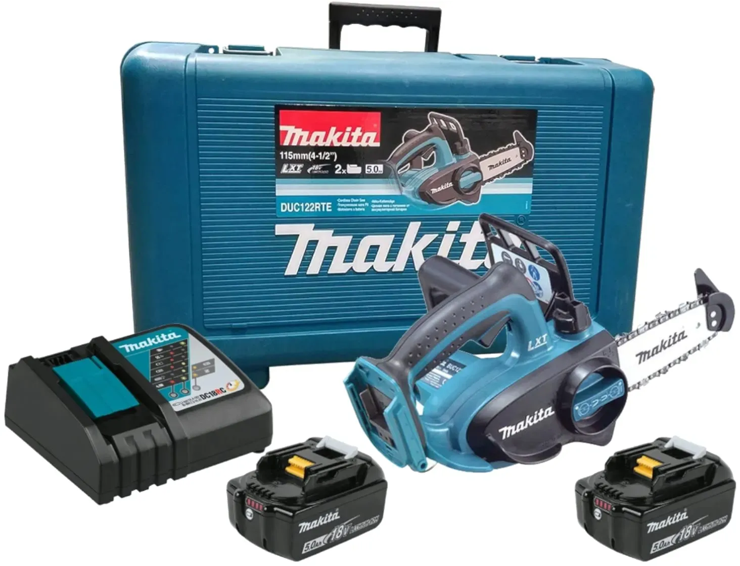 VerfĂĽgbarkeit: 1-3 Werktage - Kategorie: Kettensägen - Makita - GTIN:4260642686253 - Handliche Kettensäge mit kraftvollem Motor fĂĽr hohe Kettengeschwindigkeit und schnelle Schnitte Automatische Kettenschmierung Sägekettenwechsel und Einstellung der Kettenspannung werkzeuglos Mit Kettenbremse 1 Akkuladung reicht fĂĽr etwa eine öltankfĂĽllung Top Handle Akku-Kettensäge, nur zugelassen fĂĽr gewerbliche Anwender mit Spezialausbildung - 379,39 Euro bei Werkzeugstore24 - gefunden von billiger.de Ein Premium-Paket mit zwei 5,0 Ah Akkus und Ladegerät im Transportkoffer, ideal für intensive Nutzung. ![]() ![]() Makita DUC122RTE Top Handle Akku-Kettensäge 18V / 5,0Ah, 2 Akkus + Ladegrät im Transportkoffer