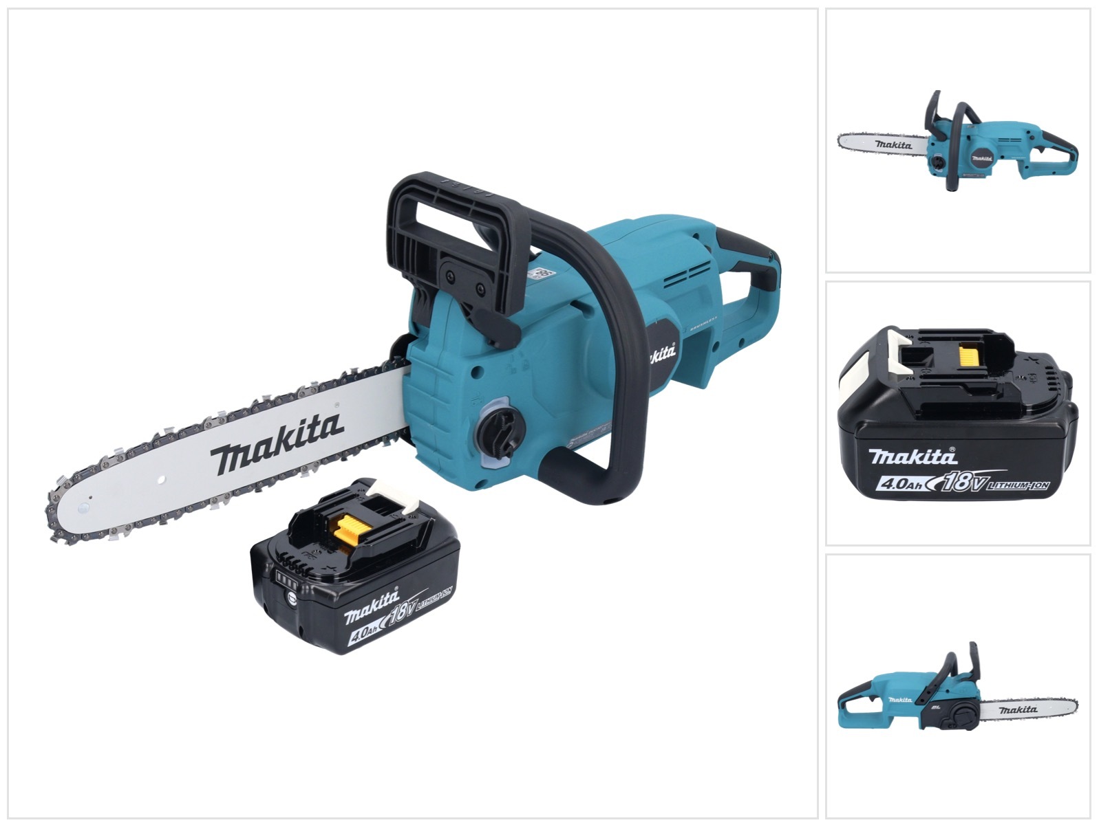 45 Händlerangebote bei billiger.de - Kategorie: Kettensägen - Makita - Die Akku-Kettensäge läuft mit einem 18 V-Akku und erreicht eine max. Ausgangsleistung von 610 W. Damit wird eine Kettengeschwindigkeit von 7,7 m/s erreicht, auch durch ein Hinzufügen eines Untersetzungsmechanismus. Komfort bietet die Kettensäge durch eine große öltanköffnung zum leichten Befüllen und das werkzeuglose Wechseln und Spannen der Sägekette. - GTIN:0088381769617 Ebenfalls ein sehr günstiges Angebot für das Solo-Gerät, das eine gute Option für preisbewusste Käufer darstellt. ![]() Makita DUC307ZX2