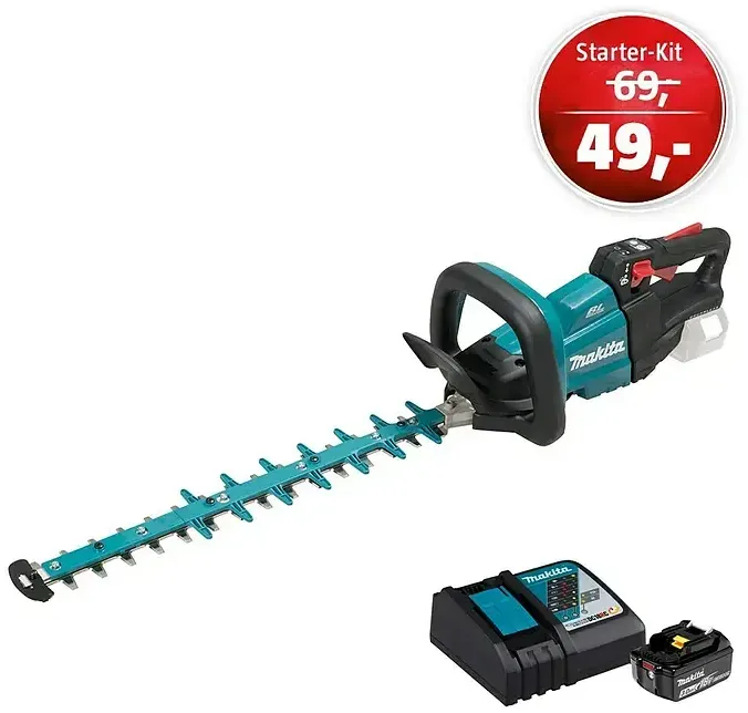 Verfügbarkeit: 1-5 Werktage - 313,5 €/Stück - Kategorie: Heckenscheren - Makita - Alle weiteren Informationen entnehmen Sie bitte den unten verlinkten Einzelartikeln. # Makita LXT 18V Akkusystem €“ ein Akku für alle Dieser Artikel ist Teil des Makita LXT 18V Akkusystems. Das System erlaubt es mehr als 300 Akku-Geräte mit ein und demselben Akku zu betreiben - egal ob Elektrowerkzeuge oder Gartengeräte. Für eine Vielzahl von Anwendungen ist etwas dabei: Bohren, Schrauben, Oberflächen schleifen, Boden reinigen oder Form- und Pflegeschnitte im Garten - mit dem LXT 18V System erledigen Sie all dies mit nur einem Akku. Zusätzlich kann zwischen verschiedenen Akkugrößen gewählt werden, um den jeweiligen Arbeitsanforderungen vollkommen gerecht zu werden. Alle Makita LXT 18V Akkus verfügen über ein integriertes Zellüberwachungssystem, das alle Akkuzellen überwacht und Informationen aller Ladezyklen speichert. Während des Ladevorgangs werden diese Daten digital mit dem Ladegerät ausgetauscht, um den Ladevorgang so effizient und schnell wie möglich durchführen zu können und gleichzeitig potenzielle Risiken wie eine zu hohe Temperatur, überladung und Tiefentladung zu minimieren. # Angebote & Aktionen # +++ *Makita Aktion 31.10.-03.01.2026: Starterkit für 49€ statt 69€ bei Kauf eines Makita 18V Akku-Gerätes +++ Erhalten Sie beim Kauf eines Makita Akku-Gerätes der LXT 18V-Serie das passende 18V Starter-Kit aus 3,0 Ah Akku und Ladegerät im Wert von 69€ für ... Ein gutes Angebot für ein Set mit einem 3,0 Ah Akku, wenn man ein Ladegerät bereits besitzt oder ein separates, günstigeres erwerben möchte. ![]() ![]() Makita DUH 502 F1 Akku Heckenschere 18V 50cm + 1x Akku 3,0Ah - ohne Ladegerät