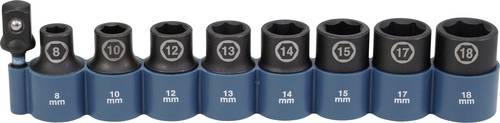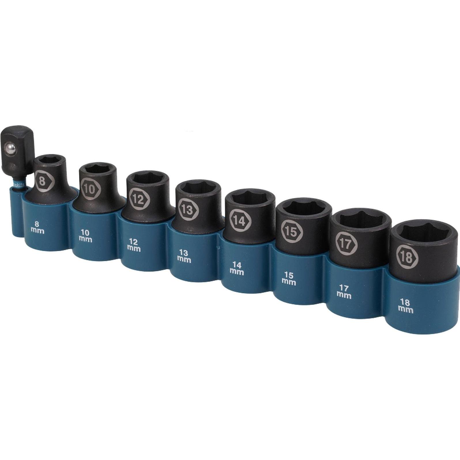 EAN: 0088381791298 - Acht Steckschlüssel mit 1/2 -Vierkantaufnahme in den Größen 8, 10, 12, 13, 14, 15, 17, 18 mm. Ideal für Schlagschrauber mit 1/2 -Aufnahme, oder in Verbindung des mitgelieferten 1/4 Sechkant-Adapter für Akku-Schrauber. Im praktischen Halter zur Lagerung und Sortierung. - bei conrad.de - aus Yadore Produktdaten Contorion. de Makita Schlagnuss-Set IMPACT BLACK 9-tlg. 9-tlg., 1/2' (E-16645)