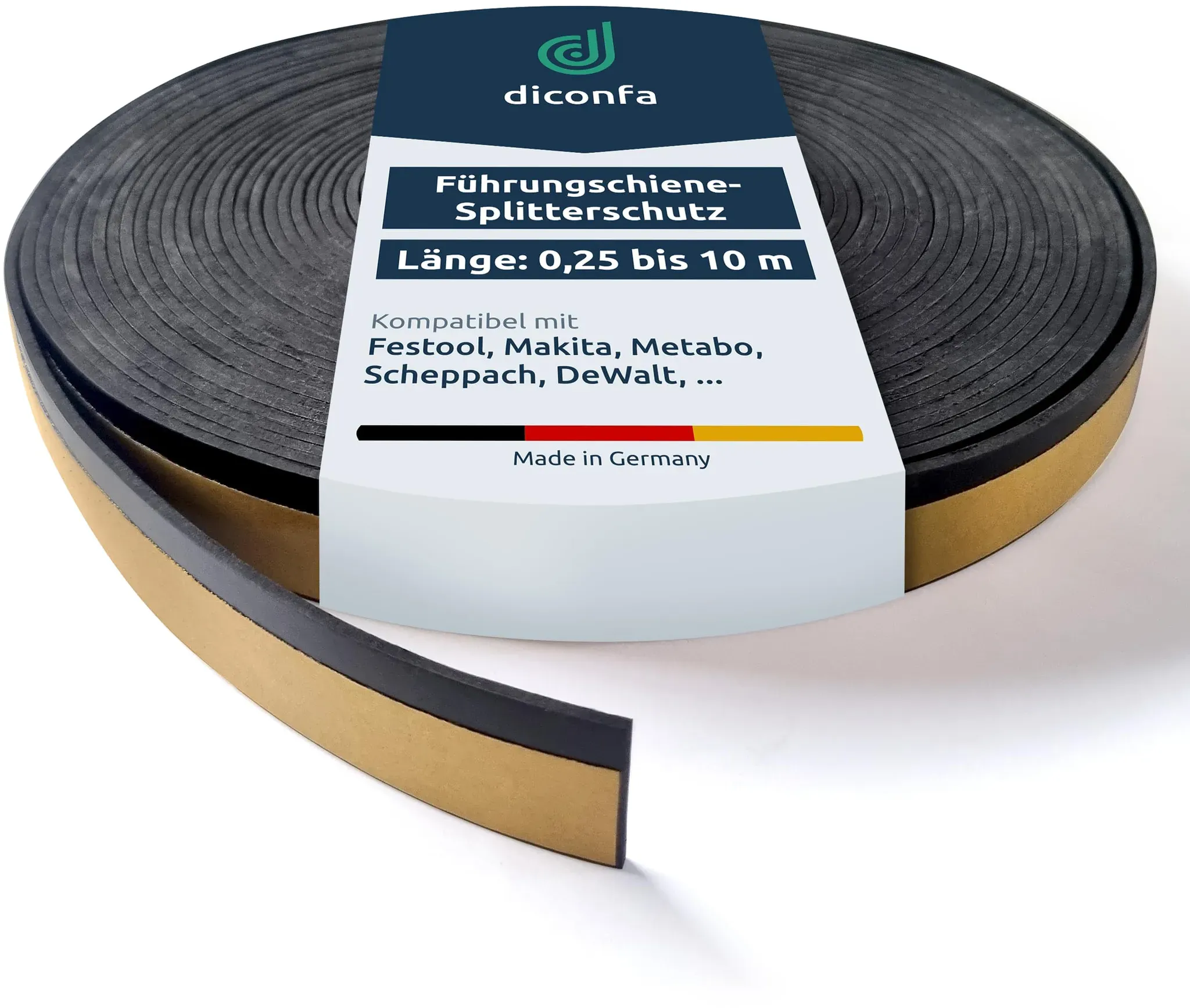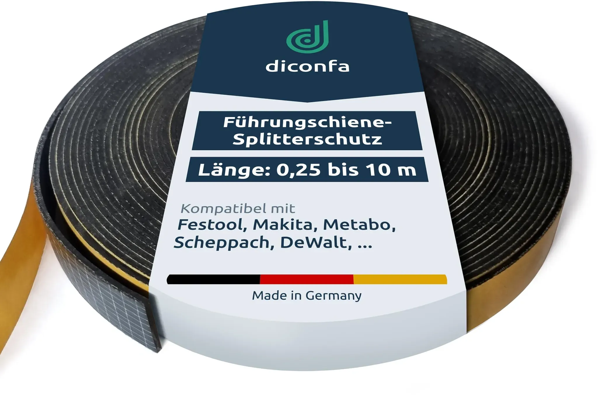 Zustand: Neu - Kreissägen-Zubehör - diconfa - DCF-000-051 - - MADE IN GERMANY: Splitterschutz Spanreißschutz - Modell: TOP == Hartgummi selbstklebend weiß, gitterverstärkt - passend für Führungsschienen von Festool Makita Metabo Scheppach DeWalt etc. ERSATZTEIL: der diconfa Splitterschutz ist besonders hart, was die Wirkung zusätzlich verstärkt. Er deutlich langlebiger als Vergleichsprodukte und verkratzt nicht. Durch die starke Klebeschicht ist eine gute Haftung rt. LIEFERUNG: Splitterschutz Hartgummi selbstklebend weiß, gitterverstärkt - LÄNGE: 1000mm ( 100cm / 1m ) - MODELL: TOP EINFACHE MONTAGE: 1. Den alten Streifen entfernen und den Untergrund von Kleberesten reinigen 2. Schutzfolie ggf. mit Hilfe eines Messer lösen 3. An Kante Führungsschiene aufkleben und einsägen HINWEIS: Die Modelle ERGO, TOP, TOP PLUS und PREMIUM sind vollflächig selbstklebend. An der Fläche können sich Späne sammeln. Das wird beim 'diconfa PROFILINE SPLITTERSCHUTZ' zuverlässig verhindert. Zu Finden im Amazon Store. - Verkäufer: diconfa im amazon.de Marketplace ![]() ![]() diconfa Splitterschutz TOP PLUS - LäNGE: 0,25m bis 10m - kompatibel mit Makita Führungsschiene 199140-0 - KLEBER: gelb, gitterverstärkt - AUSWAHL: 1000mm (1m) - Spanreißschutz