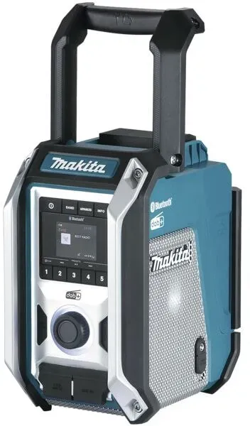 Verfügbarkeit: ab Lager - Kategorie: Radios - Makita - GTIN:0088381886949 - Musikwiedergabe und Radio hören auf der Baustelle oder in der Freizeit Robustes hochleistungsfähiges Bluetooth-Radio mit IP65-Gehäuseschutzklassifizierung. Läuft mit 12 V max., 14,4 V, 18 V Li-Ion Schiebeakkus oder optionalem Netzteil. Via Bluetooth einfach eine Verbindung mit Ihrem Smartphone aufbauen und Musik abspielen. DAB+ Empfang, AUX-Anschluss und USB-Anschluss, zum Aufladen des Smartphones. Mit Subwoofer auf der Gehäuseunterseite sowie Mittel- und Hochttonlautsprecher an den Seiten für satten und klaren Sound. Produktbeschreibung: mit Subwoofer auf der Gehäuseunterseite sowie Mittel- und Hochttonlautsprecher an den Seiten für satten und klaren Sound bester Hi-Fi-Sound durch vordefinierte Equalizer-Einstellungen für 7 verschiedene Musik-Genres mit Bluetooth 5.0 für den Empfang von DAB, DAB+ und FM geeignet ein Aux-Anschluss für MP3-Kompatibilität und einen USB-Anschluss um Ihr Mobilgerät zu laden kann mit allen Makita-Li-Ion-Schiebeakkus 10,8 - 18 V betrieben werden, nicht jedoch mit maktec- oder G-Serie-Akkus Sender präzise einstellbar über digitales, großflächiges Display Gehäuse in robuster Baustellenausführung mit Spritzschutz bis Schutzklasse IP65 der ideale Begleiter auf der Baustelle - 217,95 Euro bei reichelt.de - gefunden von billiger.de Dieses Angebot von Office Partner GmbH ist eine gute Wahl für Kunden, die das Radio in einer bestimmten Farbvariante suchen. ![]() ![]() makita DMR115 Baustellenradio blau, schwarz