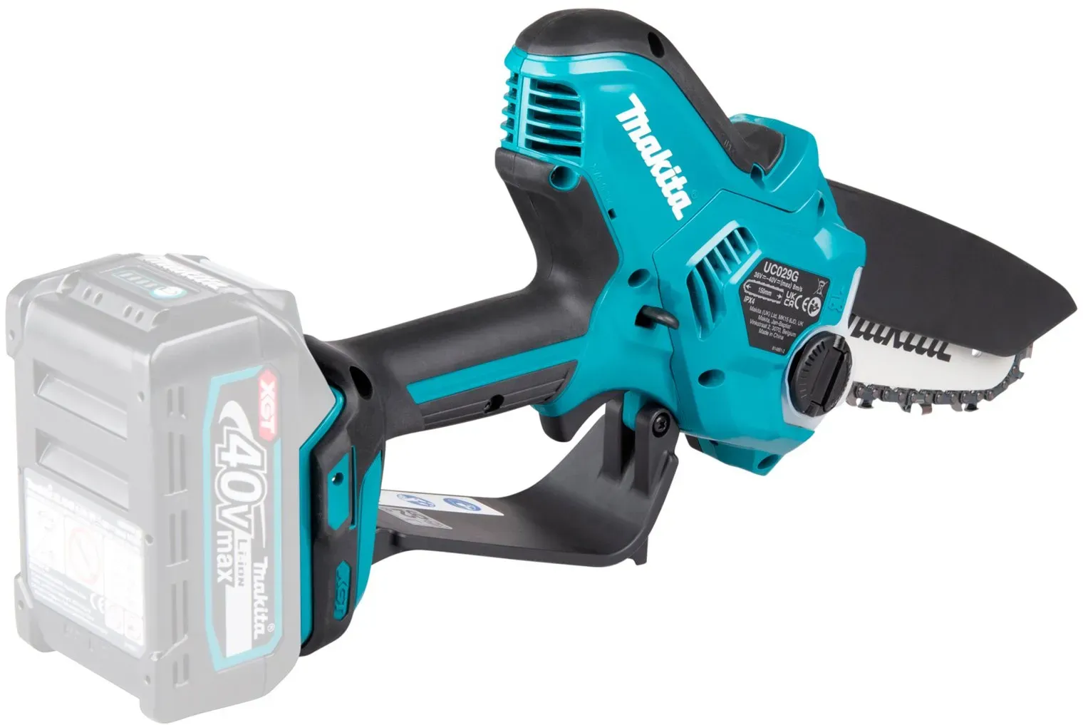 Auf Lager Versand durch AmazonMakita Akku-Astsäge, 40V, 15 cm Schnittlänge, 8 m/s Kettengeschwindigkeit, Petrol-Schwarz UC029GZ