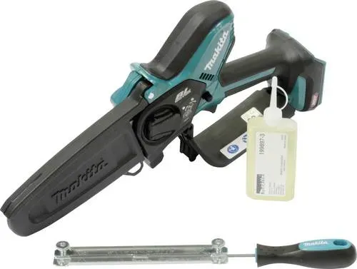 16 Händlerangebote bei billiger.de - Kategorie: Kettensägen - Makita - Die Makita Akku-Astsäge UC029GZ ist eine leistungsstarke und kompakte Lösung für verschiedene Holzschnittarbeiten. Mit einem Gewicht von nur 1,3 Kilogramm ist sie leicht zu handhaben und passend für den Einsatz in Gärten oder bei der Pflege von Bäumen. Die Säge bietet eine Schwertlänge von 150 Millimetern, die eine präzise und effiziente Schnittführung ermöglicht. Dank des Akkubetriebs ist die Säge unabhängig von Stromquellen und bietet eine hohe Flexibilität bei der Anwendung. Die Kombination aus einer maximalen Kettengeschwindigkeit von 8 Metern pro Sekunde und einer Leistung von 590 Watt sorgt für eine gleichmässige und starke Leistung, die auch bei anspruchsvollen Schnitten überzeugt. Die Makita UC029GZ ist somit eine zuverlässige Wahl für alle, die eine leistungsstarke und tragbare Astsäge suchen. - Leichte und kompakte Bauweise für einfache Handhabung - Hohe Leistung von 590 Watt für effiziente Schnitte - Maximale Kettengeschwindigkeit von 8 m/s für schnelle Ergebnisse - Akkubetrieb mit 40 V Li-Ion Batterie für flexible Nutzung. - GTIN:0197050007643 ![]() makita UC029GZ Akku-Kettensäge 40,0 V max., ohne Akku