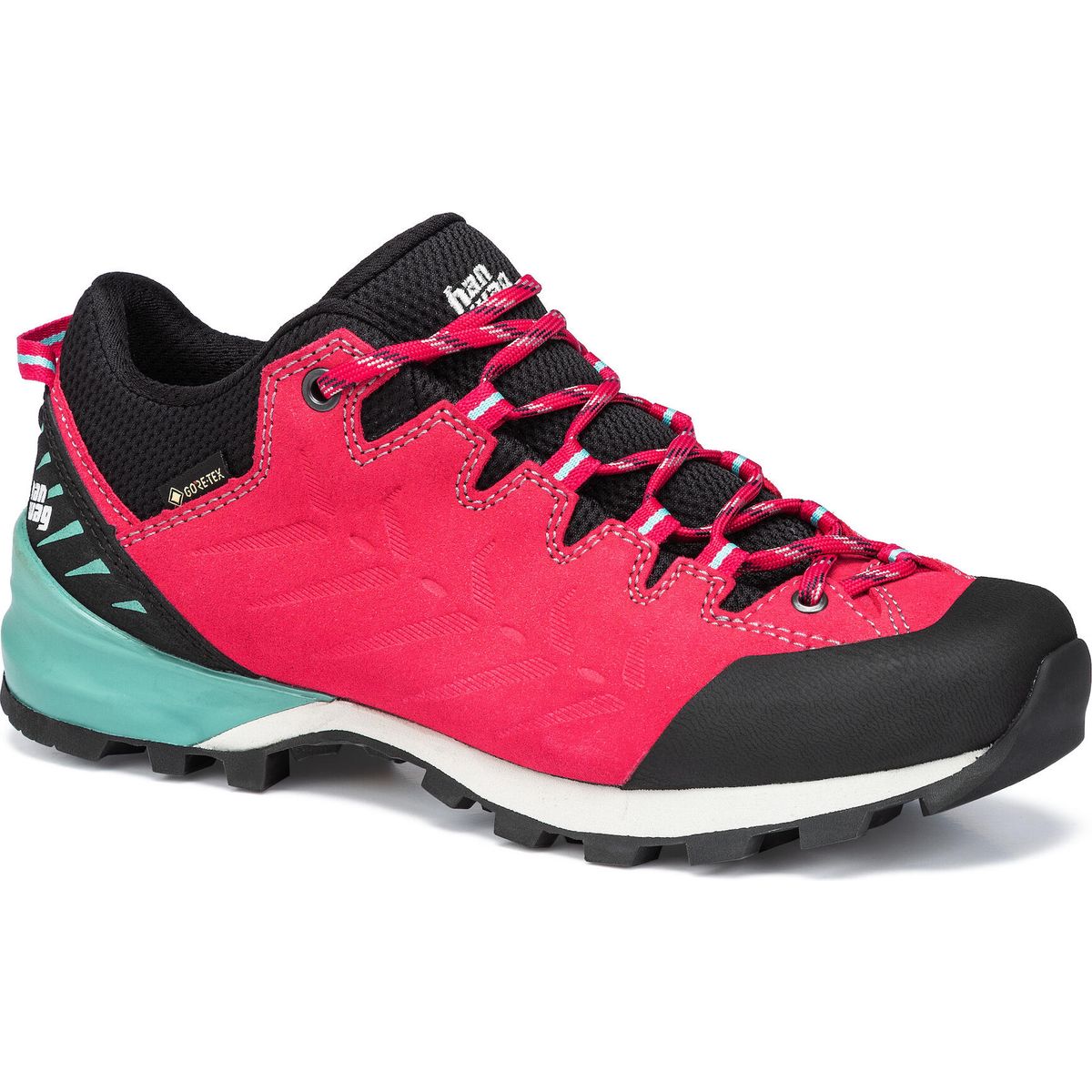 Kategorie: Wanderschuhe - Hanwag - GTIN:4047761521548 - Hanwag Damen Trekkingschuh Makra Pro Low Lady GTX Pink Mint Der neue Hanwag Makra Pro Low GTX eignet sich für anspruchsvolle Bergtouren mit Gletscherpassagen genauso wie für einfachere Hoch- und Felstouren im Sommer. Der leichte und stabile Allrounder ist mit wasserdichter Gore-Tex-Membran und langlebigem Perwanger Oberleder ausgestattet. Für die leichte, jedoch besonders stabile Zwischensohle hat Hanwag eine Kombination aus PU, TPU und EVA gewählt. PU in der Ferse mit integrierter Stegeisenauflage aus TPU - sorgt für perfekte Dämpfung, EVA im Vorfußbereich für Präzision im Antritt. Exzellenten Grip bietet die Vibram Makra Laufsohle. Ein Dream-Team! - 180,00 Euro bei WANDERSCHUHE.NET - gefunden von billiger.de Für 185 Euro bietet dieses Angebot einen guten Preis für Damen-Zustiegsschuhe in einer mittleren Größe. ![]() ![]() Hanwag Makra Pro Low Lady GTX - Damen Zustiegsschuh - navy/pink (007522) 6,5