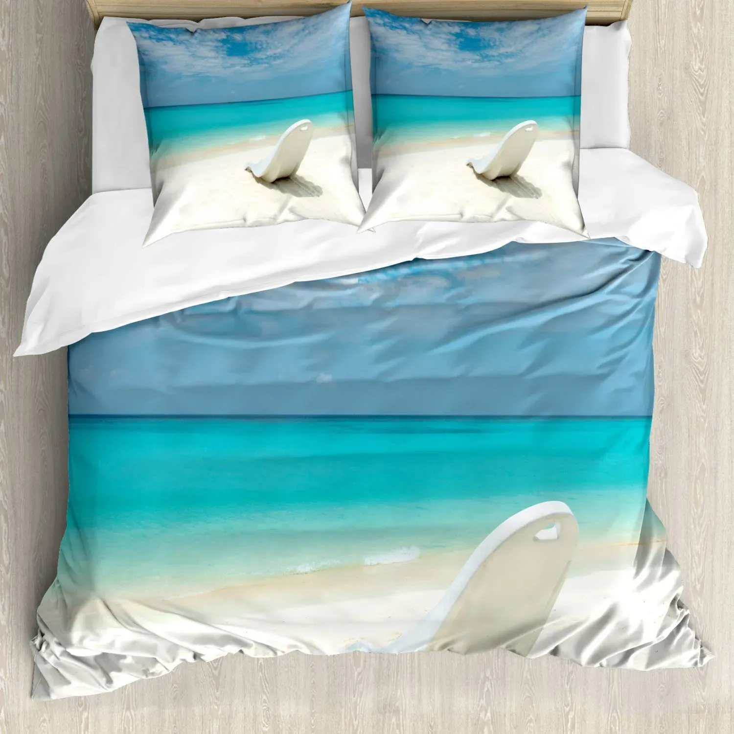 ![]() ![]() ABAKUHAUS Reise Bettwäsche Set für Doppelbetten, Malediven Strand Sunny Day, Weicher Microfaserstoff Allegigeignet kein Verblassen, Turquoise Weißgrau