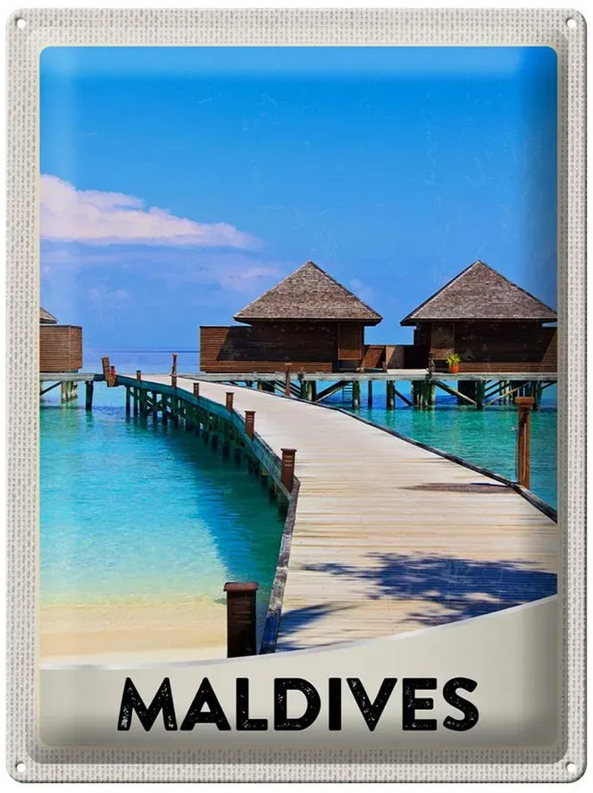 ![]() ![]() Femer GmbH Metallschild Reise 30x40cm Malediven Insel Amerika Urlaub Meer, (1 St), gewölbte Oberfläche, abgerundete Ecken, umgeschlagene Kanten