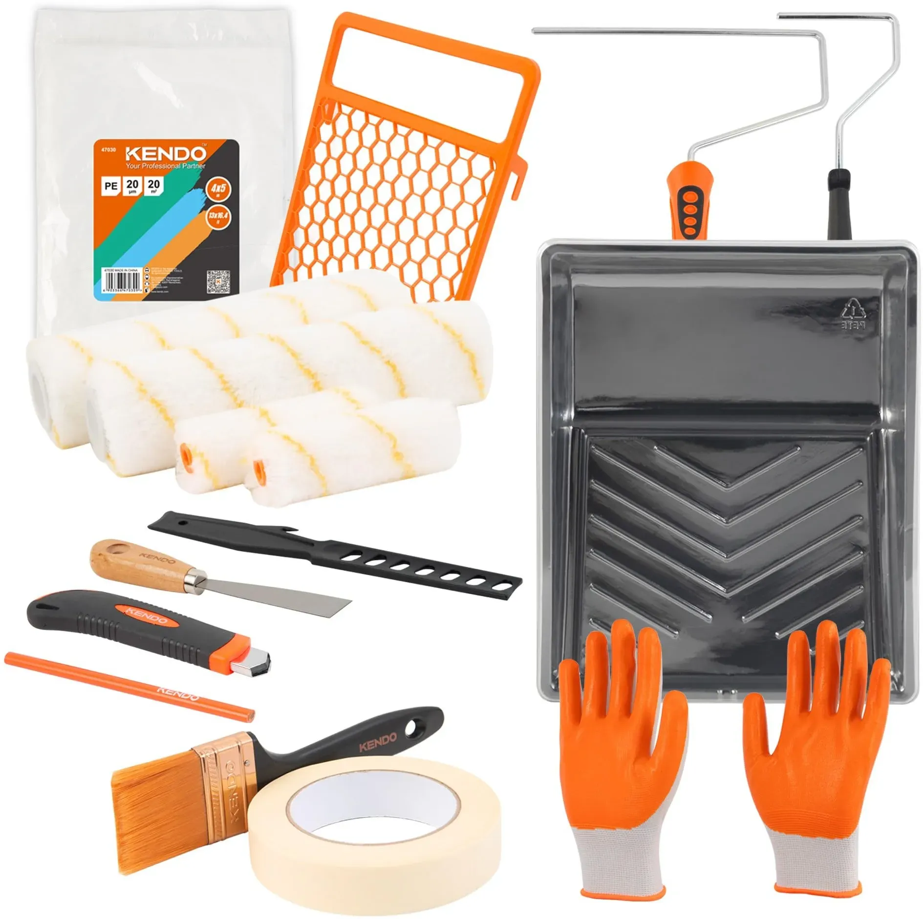 Kategorie: Sonstige Artikel in Bauen & Renovieren - KENDO - GTIN:6903366467026 - ALLES FüR DEIN PROJEKT: Streichen einfach gemacht mit dem KENDO Maler Set. Kompletter Malerbedarf und sämtliches Malerzubehör in einem Set. Farbrollen in zwei Größen, Schutzhandschuhe, Abdeckmaterial sowie Cuttermesser, Bleistift und Spachtel. FREUDE AM RENOVIEREN: Die qualitativ hochwertigen Farbrollen mit optimaler Farbaufnahme sorgen für einen gleichmäßige Auftragung der Wandfarbe. Handschuhe schützen Dich und Abdeckfolien sowie Kreppband schützen deine Möbel vor Verschmutzungen. FARBWANNE MIT 3 INLAYS: Dieses Streichset zeichnet sich durch seine 3 Farbwannen Inlays aus. Schnell austauschen und mir der nächsten Dispersionsfarbe weiter machen. DARF NICHT FEHLEN wie z.B. ein Spachtel, ein Rührstab, ein Bleistift und ein Cuttermesser mit 18mm Klinge runden das Set ab und Du kannst sofort loslegen. LIEFERUMFANG: 2 x Farbrollen groß und 2 x klein inkl. der passenden Bügel. Farbwanne mit 3 x Kunststoff Inlays, 1 x Paar PU Handschuhe, 1 x Pinsel, 1 x Kreppband, 1 x Bleistift, 1 x Cuttermesser 18mm, 1 x Spachtel mit Holzgriff, 1 x Farbrührer, 1 x Abdeckfolie 20qm, 1 x Abstreifgitter groß, 1 x Pinsel - 24,95 Euro bei Amazon Marketplace Home Improvement - gefunden von billiger.de Ein professionelles 12-teiliges Malerset, das eine breite Palette an Werkzeugen für anspruchsvollere Malerarbeiten bietet. ![]() ![]() w4roducts w4products W4products Profi Malerset 12-teilig - Malerzubehör - Streichen Set - Premium Malerset Farbroller groß - Farbwanne Malerrolle klein & groß - Haarpinsel - Stoßspachtel - Farbrührer - Abstreifgitter