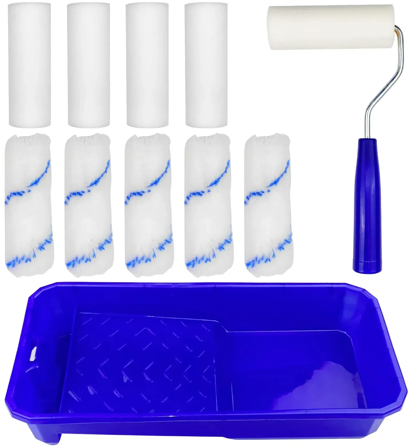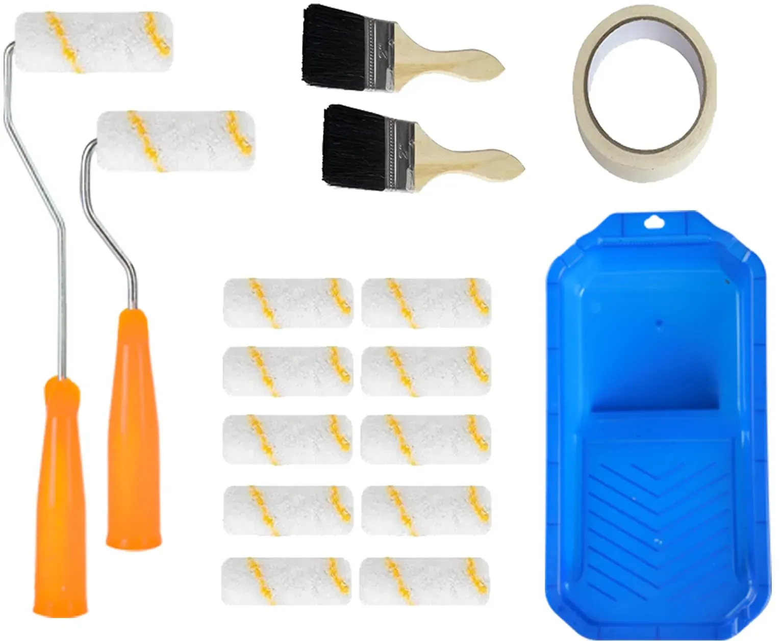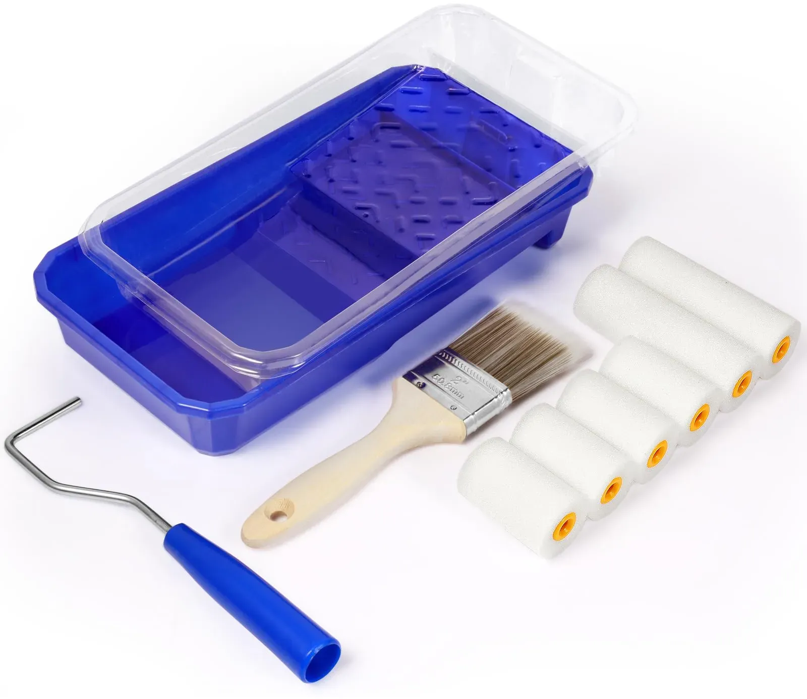 Kategorie: Sonstige Artikel in Bauen & Renovieren - wvu & wvo - MALER SET - Universelles, komplettes Zubehör Set zum Streichen kleiner Räume, Möbel. Das Set ist einsatzbereit, Sie finden Zubehör für die Lackierung und Lackvorbereitung. Eine ausgezeichnete Wahl für Renovierungen! EINLAGE - Das Set beinhaltet 10.5 cm Polyester-Borstenbezüge mit grünen Streifen. Sie verlieren keine Borsten wie eine Bürste und sorgen für eine schnellere und effektivere Abdeckung der Wände.Das Set enthält auch einen Griff für Patronen. PRAKTISCHE FARBSCHALE - Eine kleine 15 x 30 cm große Farbschale aus strapazierfähigem, rissfestem Kunststoff. Dank der Perforation kann überschüssige Farbe entfernt werden. LANGLEBIGE MATERIALIEN - Die Elemente des Sets bestehen aus soliden und sicheren Materialien mit hoher Haltbarkeit. Die meisten Elemente sind mehrfach verwendbar nach Gebrauch genügt es, sie von Farbresten zu reinigen. Wichtig: Bevor Sie den Roller zum ersten Mal benutzen, müssen Sie ihn von allen Flusen befreien, um ein einwandfreies Arbeitsergebnis zu gewährleisten. Waschen Sie ihn dazu sorgfältig und trocknen Sie ihn anschließend. Nachverkaufs Wenn Sie nach Erhalt des Produkts irgendwelche Fragen haben, kontaktieren Sie uns bitte, wir werden unser Bestes tun, um das Problem des Kunden zu lösen und eine zufriedenstellende Lösung zu bieten. - 9,99 Euro bei Amazon Marketplace Home Improvement - gefunden von billiger.de Dieses Set ist mit verschiedenen Rollengrößen und einer Farbwanne gut ausgestattet für kleinere bis mittlere Projekte. ![]() ![]() TAIXING 10 Stück Farbroller Set, 5cm 10cm Schaumstoff Farbroller Klein Malerrolle Farbrolle Lackrolle Mini Lackierwalze Malerset mit Farbwanne, Farbroller Rahmen, Einweg Farbwanne und Flachpinsel