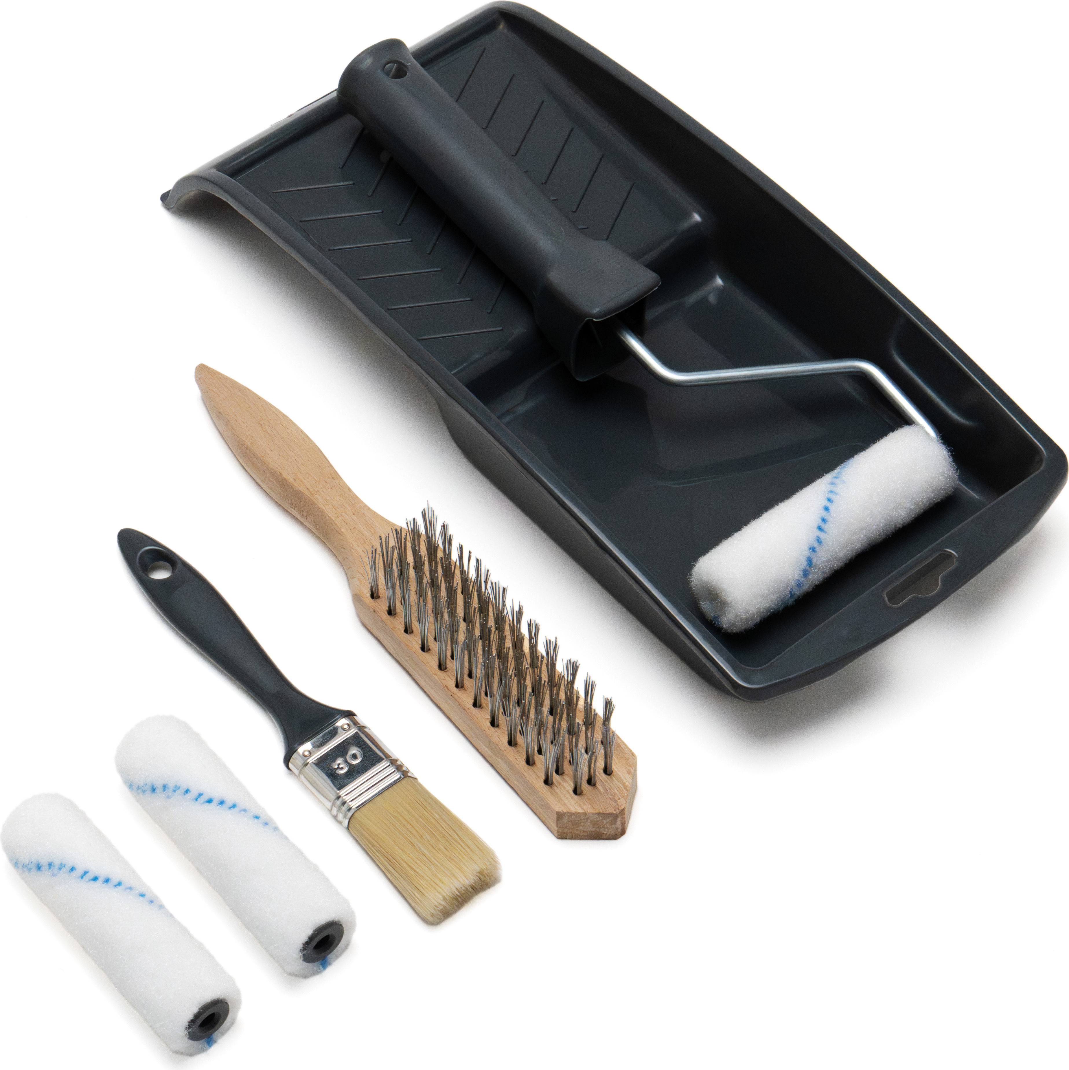 Kategorie: Sonstige Artikel in Bauen & Renovieren - ACEBON - GTIN:0755379953944 - Farbroller: 2x Polyacryl Farbrollen 23 cm - ideal zum Streichen größerer, flacher Flächen; 2x Polyacryl Farbroller 10 cm - perfekt für schwer zugängliche Stellen. Verlängerungsstange: Die dreiteilige Gewinde-Verlängerungsstange ermöglicht es Ihnen, bis zu 90 cm zu Ihrer Reichweite hinzuzufügen und enthält Adapter für die Verwendung mit konischen oder Gewindewerkzeugen. Weiteres Maler Zubehör: Das Malerwerkzeug Set enthält außerdem einen Flachpinsel 50 mm eine große Farbwanne 36 cm x 28 cm mit 1 Malerspachtel 5 cm breit und Walzenwaschgestell. Hochwertige Materialien: Alle Malerwerkzeuge des Sets sind aus hochwertigen Materialien gefertigt, was die Arbeit angenehmer macht und jede Renovierung mehr Freude als ärger bringt. Die Sets sind sorgfältig vorbereitet, um alles Notwendige für die richtige Art von Renovierungs- und Malerarbeiten zu bieten. Universelle Verwendung: Das Pinsel und Farbroller Set ist ideal für Menschen, die zum ersten Mal das Aussehen ihres Hauses verändern, sowie für Profis in der Bau- und Renovierungsbranche. Bei richtiger Pflege halten die Produkte lange. Waschen Sie sie nach jedem Gebrauch in Wasser. - 24,99 Euro bei Amazon Marketplace Home Improvement - gefunden von billiger.de Ein hochwertiges 5-teiliges Set, das speziell für Kleinflächen konzipiert ist und sogar eine Drahtbürste enthält. ![]() kaufland.d e WO-WE Malerset Klein 5tlg für Kleinflächen PL150 - Farbroller 10cm + 2 Ersatzrolle + Farbwanne + Pinsel 30mm + Drahtbürste