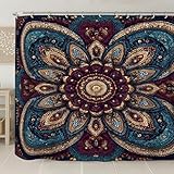 keine Angabe Gewöhnlich versandfertig in 2 bis 3 TagenBöhmischer Duschvorhang, reiches Burgunderrot, Blaugrün, Blumen-Mandala, Badezimmer-Dekor, lebendiges Sommer-modernes Design, wasserdichter Stoff-Duschvorhang mit Haken, 274 x 183 cm