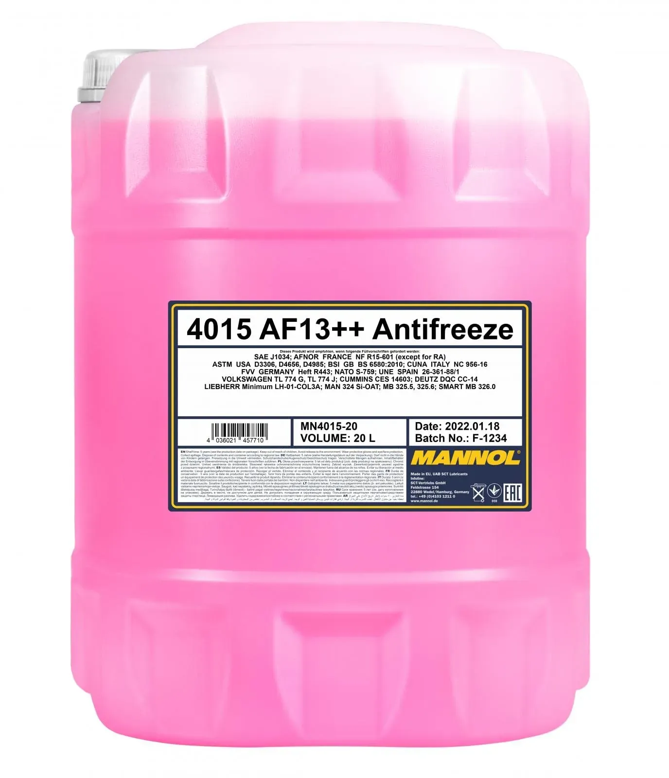 Kategorie: Autoreinigung & Pflege - Mannol - GTIN:4036021457710 - MANNOL Motoröl - 38,89 Euro bei Amazon Marketplace Automotive - gefunden von billiger.de Ein solides 20-Liter-Angebot, das eine gute Menge für den langfristigen Gebrauch bietet. ![]() ![]() MANNOL AF13++ - High-performance Kühlmittel eBay Kühlerfrostschutz 20L Violett -40 G13