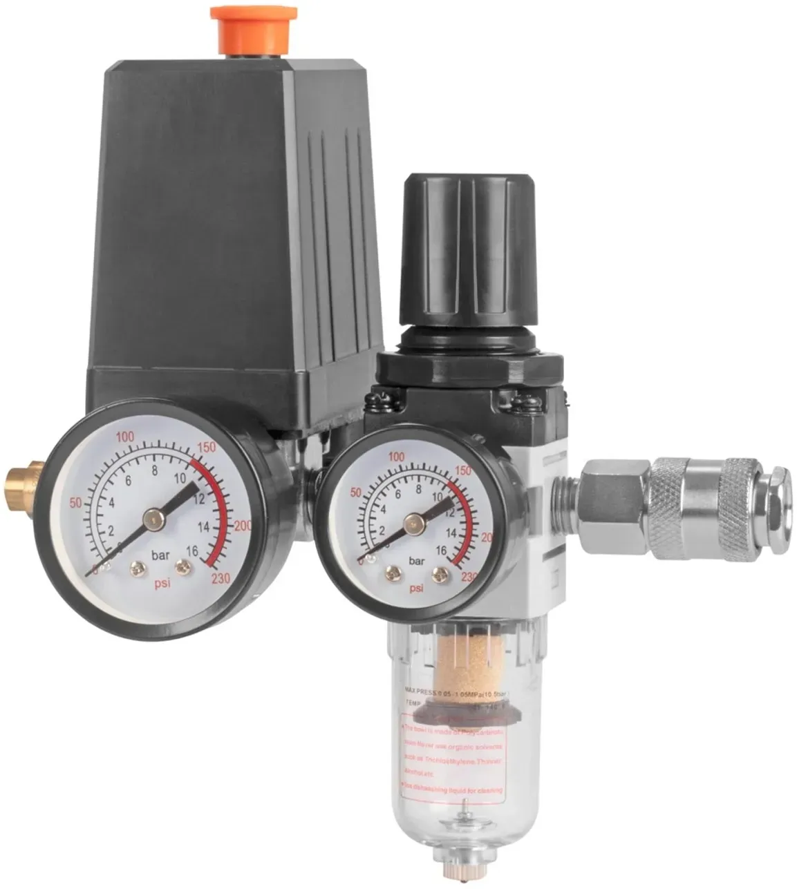 Verfügbarkeit: Gewöhnlich versandfertig in 4 bis 5 Tagen - Kategorie: Druckluftzubehör - MELARIO - GTIN:0600685832622 - Measuring Media:Gas Sensor Type:Silicon semiconductor sensor Shell:ABS Black plastic Pressure limit:0-200 Psi Instrument power supply: DC3V(2*1.5V AAA battery powered) - 21,99 Euro bei Amazon Marketplace Automotive - gefunden von billiger.de Der STAHLWERK Druckschalter mit Manometer für 22,99 Euro ist eine praktische Kombination für Kompressoren. ![]() ![]() STAHLWERK Druckschalter 0-10 bar Druckregler mit Manometer für Kompressoren