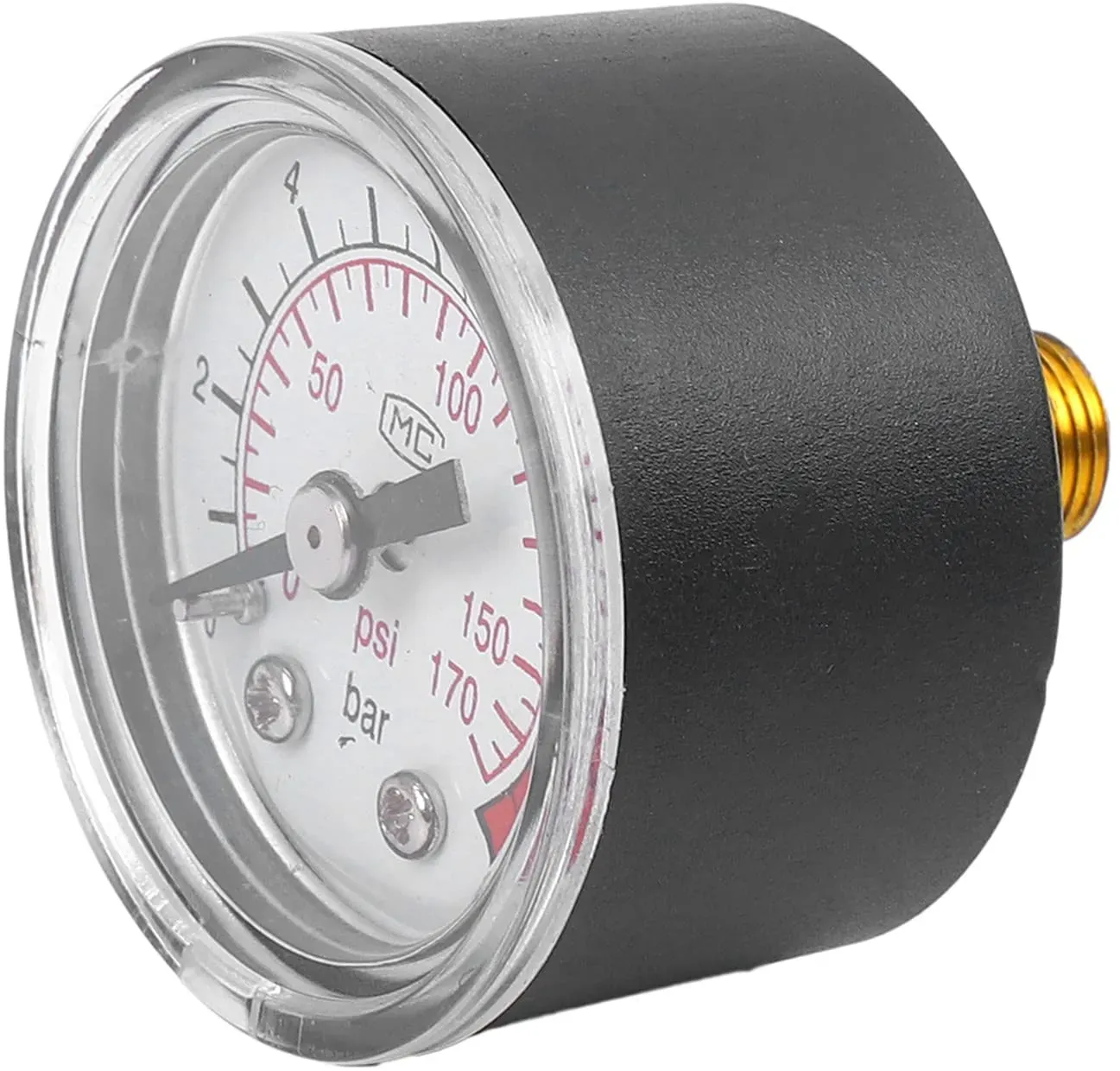 Verfügbarkeit: 1 bis 2 Werktage - Kategorie: Druckluftzubehör - Riegler - GTIN:4047322034098 - Gehäusedurchmesser: 50 mm, Anschlussgewinde: G 1/4, Prozessanschluss: rückseitig, zentrisch, Kleinster Anzeigebereich: 0 bar, Größter Anzeigebereich: 10 bar, Genauigkeitsklasse: 1,6, Material Sichtscheibe: Kunststoff, Material Zeigerwerk: Kunststoff - 4,39 Euro bei Toolineo - gefunden von billiger.de Dieses Manometer ist mit 4,75 Euro extrem preiswert und eignet sich für einfache Anwendungen, bei denen keine hohe Präzision erforderlich ist. ![]() ![]() Yuattory R 0-12 Bar 0-170 PSI 10 mm Gewinde Gas Luftpumpe Druck Gauge Kompressor Manometer