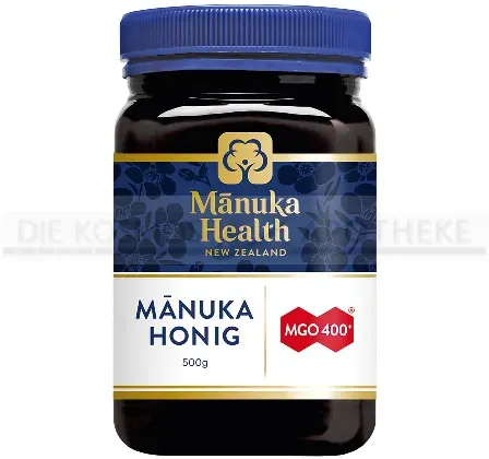 Verfügbarkeit: 1-2 Werktage - 199,92 €/kg - Kategorie: Honig - Manuka Health - GTIN:9421023628025 - PZN:15874851 - Mãnuka Honig MGO 400+ 250 g - rezeptfrei - von Hager Pharma GmbH - - 250 g - 49,98 Euro bei DocMorris Apotheke - gefunden von billiger.de Ein etabliertes Manuka Health Produkt mit 500g, das für seine zertifizierte Qualität bekannt ist. ![]() ![]() Manuka Health - Manuka Honig MGO 400+ 500g, hergestellt und abgefüllt in Neuseeland mit zertifiziertem Methylglyoxal Gehalt, natürlicher Manuka Honig von der Manukapflanze, 100% Manuka, vegetarisch