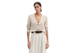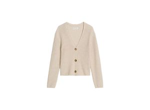 Cardigans Pullover und Strickjacken Damenmode Bekleidung Strickjacken Cardigans Damenbekleidung - EAN:7333544006676 - Handstrick-Charakter trifft Häkel-Optik: Grob gestrickter Struktur-Cardigan mit großen Maschen im Mix mit lässigem See-Through-Effekt. Das Garn ist edel und hochwertig aus einem Baumwolle-Viskose-Mix. Das Modell eignet sich perfekt zum Layering und verleiht Blusen, Kleidern und Longsleeves einen lässigen Style. Der Cardigan hat einen gerippten Rundhalsausschnitt, lange Ärmel und klassische Abschlüsse an Ärmeln und Saum. Besonders edel ist die 'französische Schulter': Hier liegt die Schulternaht nicht am höchsten Punkt, sondern ist lässig nach hinten versetzt. Ein Qualitätsmerkmal sind die in Form gestrickten fully fashioned-Details, die ohne Zuschnitt auskommen und so Garnabfall vermeiden., Material: Materialzusammensetzung: Obermaterial: 76% Baumwolle, 7% Viskose, 7% Polyacryl, 6% Polyester, 4% Polyamid, Pflegehinweise: Handwäsche, Optik/Stil: Optik: unifarben, Farbe: Farbbezeichnung: Offwhite, Passform/Schnitt: Ausschnitt: Rundhals, Ausschnittdetails: Rippbündchen, Ärmellänge: Langarm, Passform: regular fit, Details: Verschluss: Knopfleiste - gefunden von Kelkoo Ein eleganter Cardigan aus Bändchengarn in Burnt Coffee Melange mit V-Ausschnitt und schmaler Passform, ideal für einen figurbetonten Look. ![]() Cardigan MARC O'POLO 'aus Bändchengarn', Damen, Gr. L, burnt coffee melange, Obermaterial: 70% Baumwolle, 30% Polyester, unifarben, slim fit, V-Ausschnitt, Strickjacken